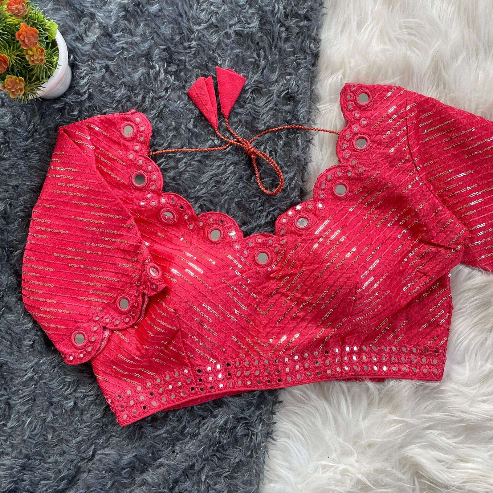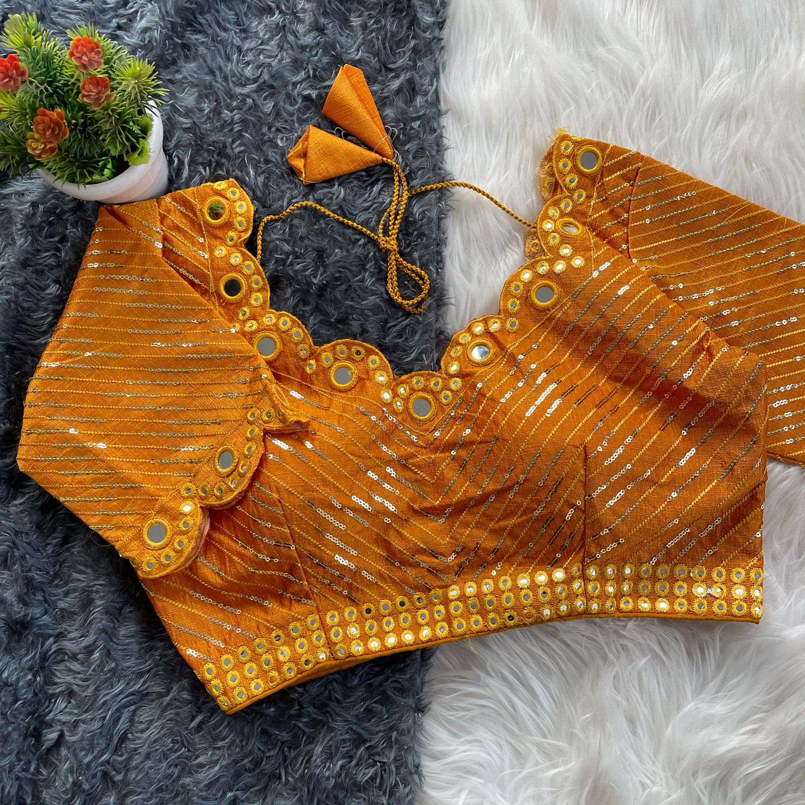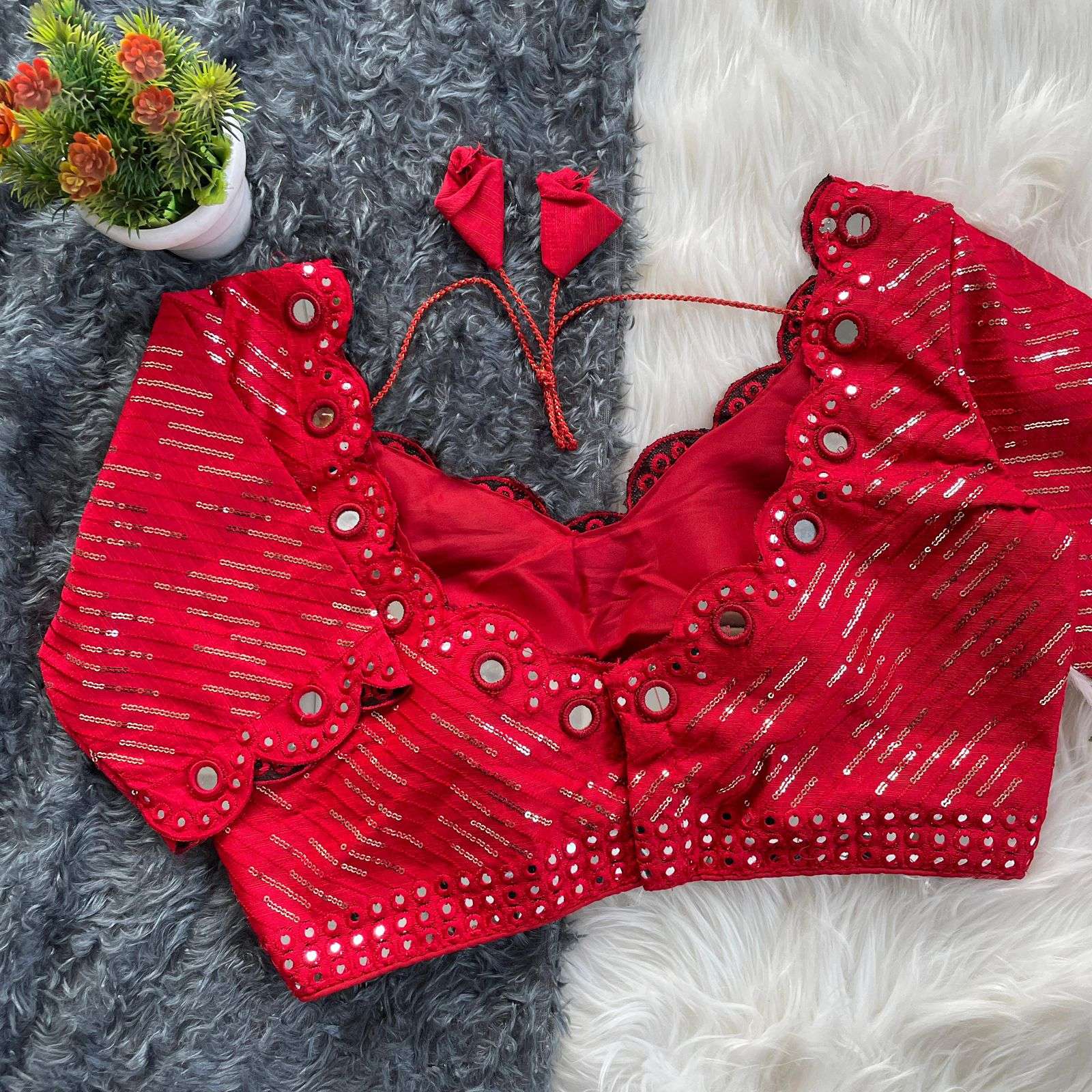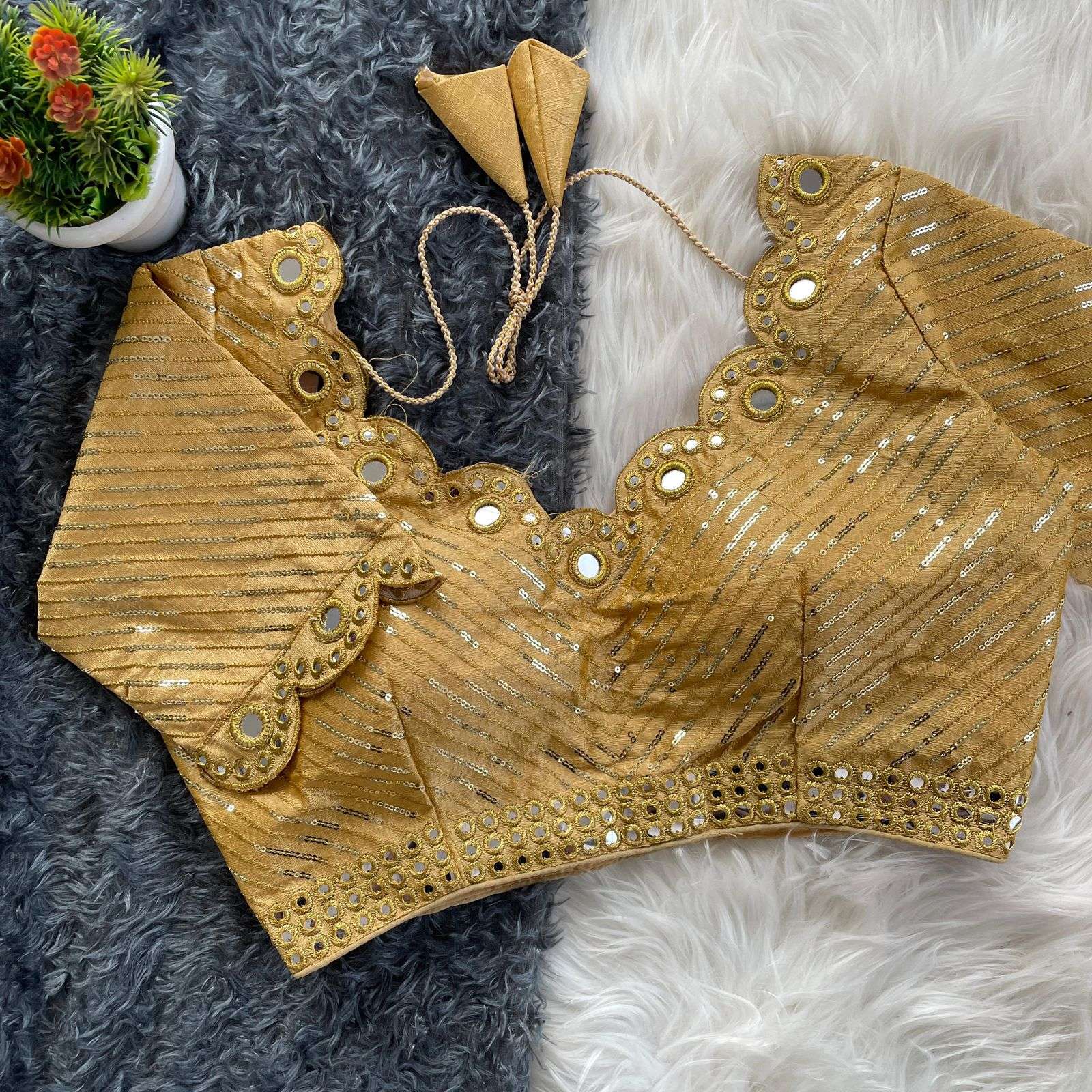 DESGINE - Beautiful Traditional Blouse Heavy Stitching Heavy Padded With Beautiful Mirror Work Back open Style
