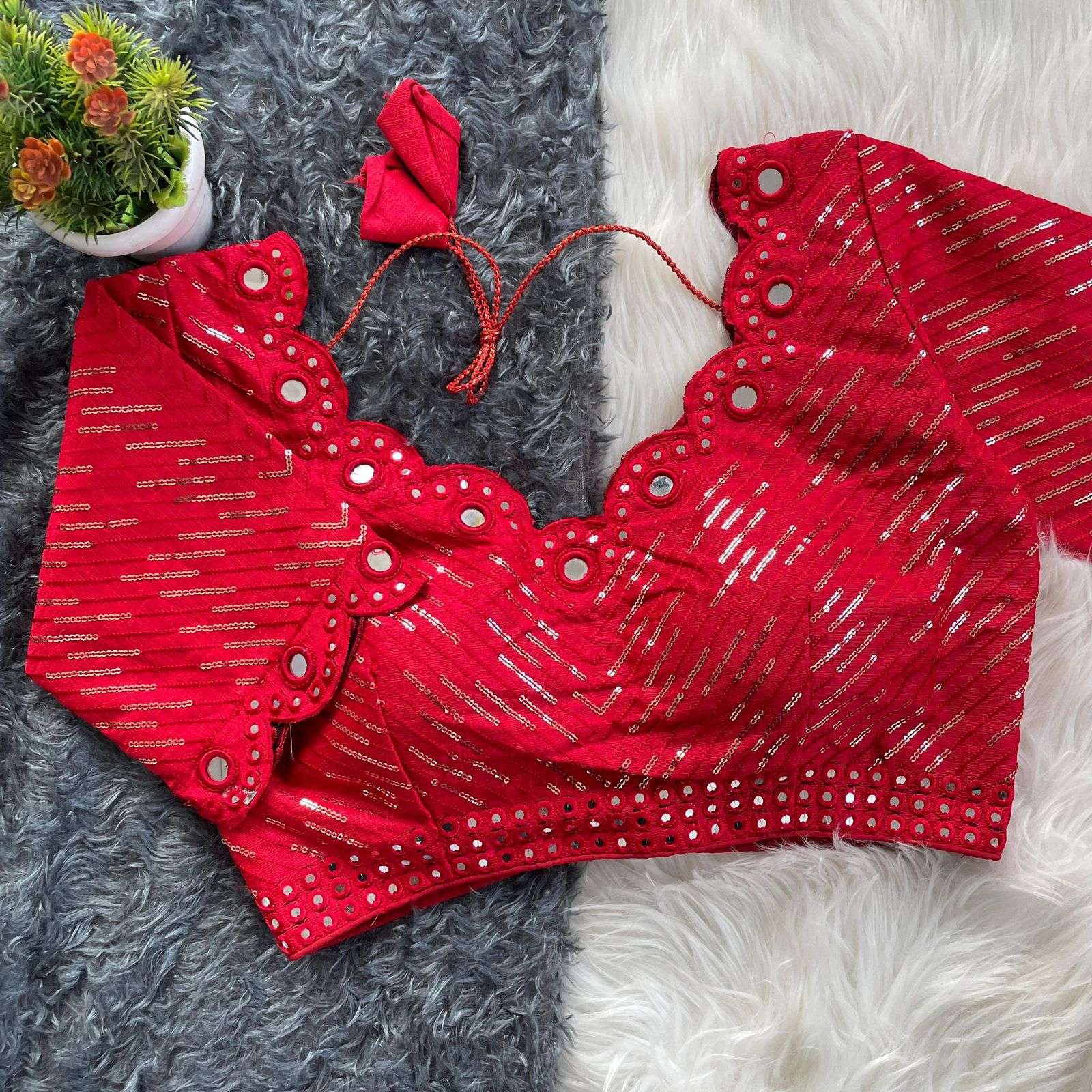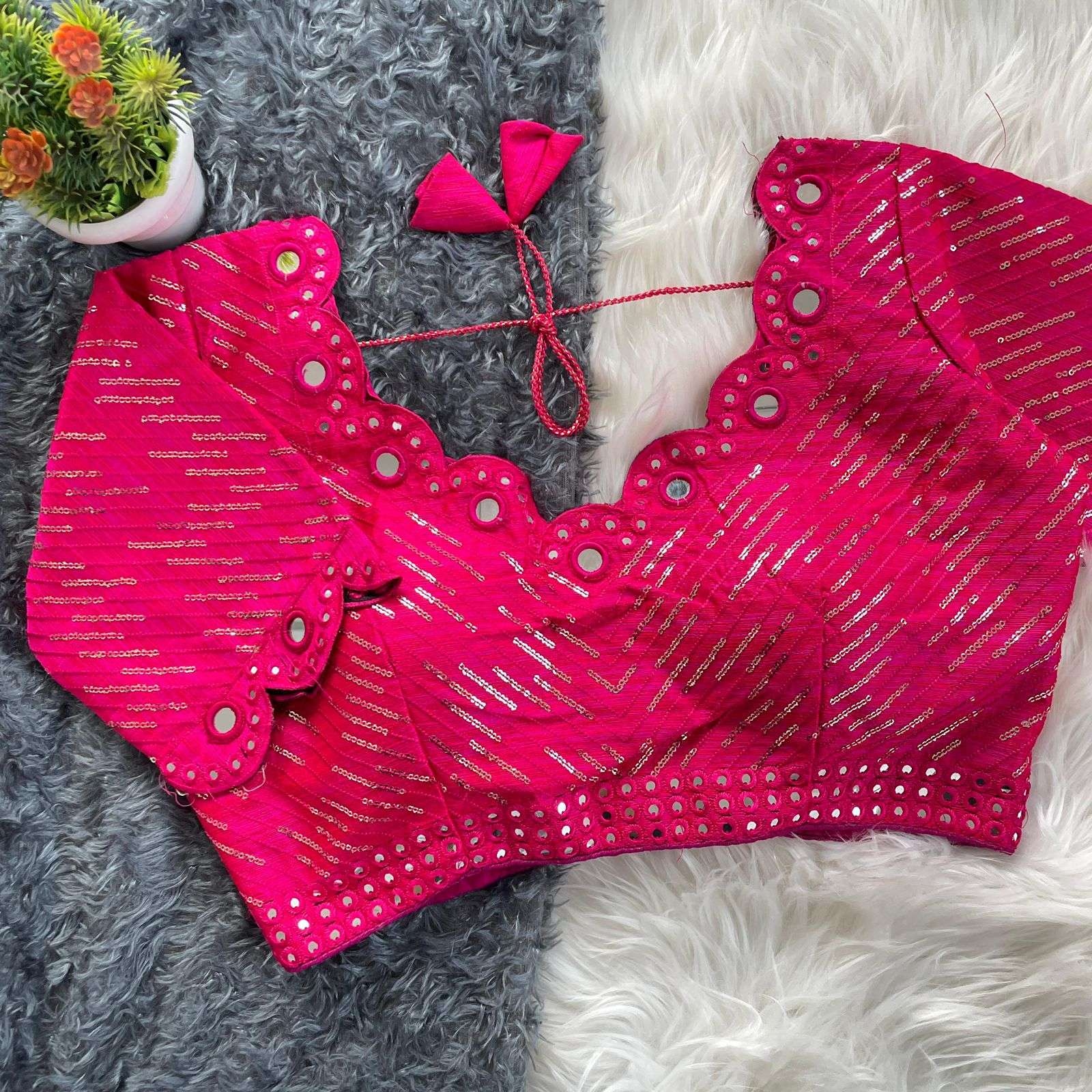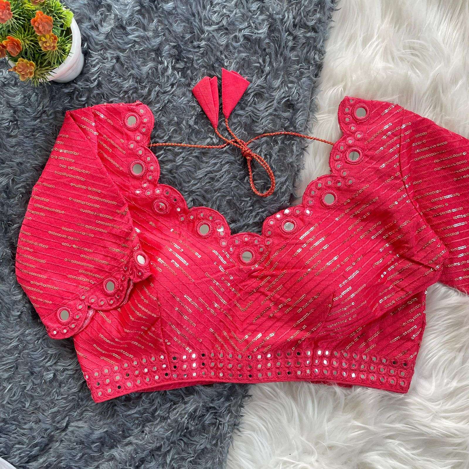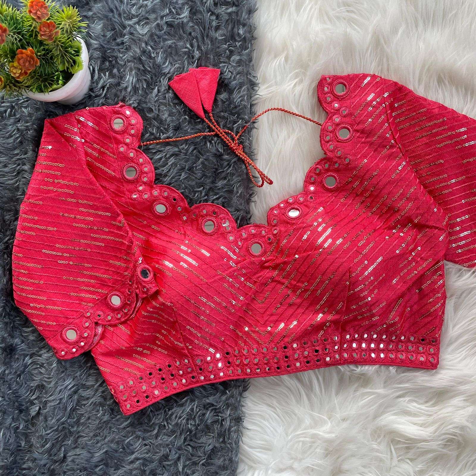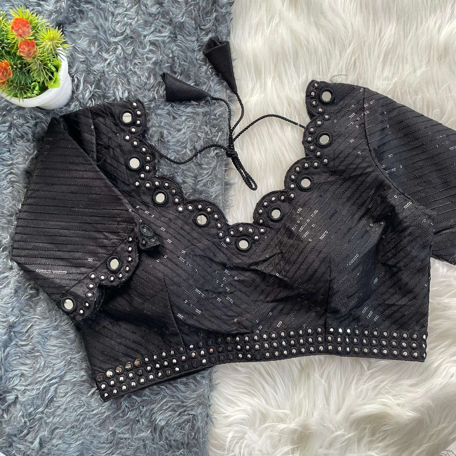 DESGINE - Beautiful Traditional Blouse Heavy Stitching Heavy Padded With Beautiful Mirror Work Back open Style