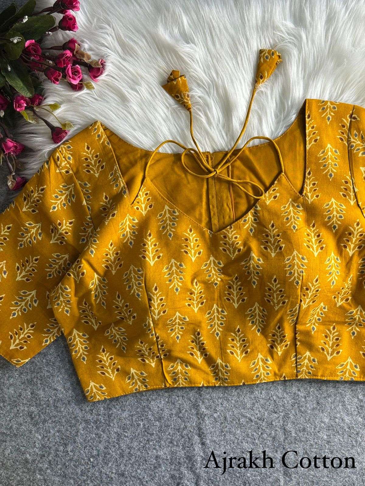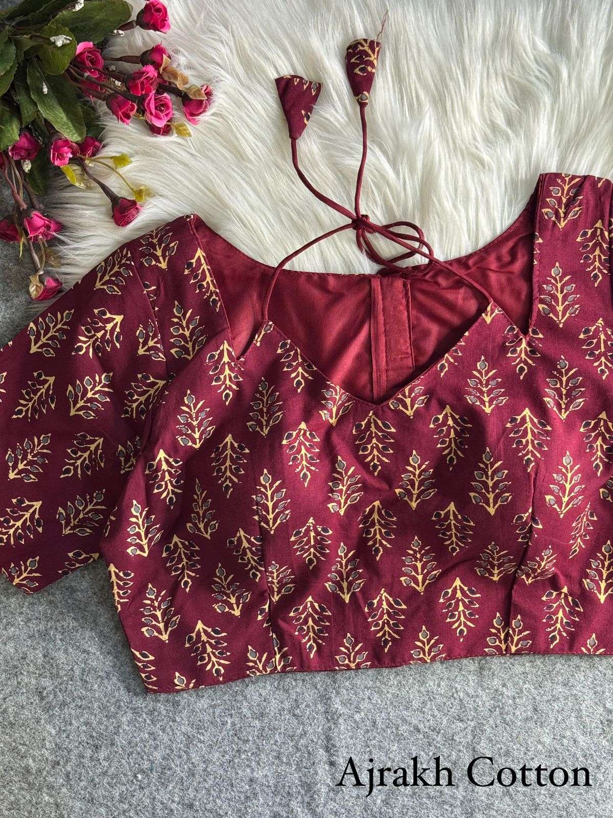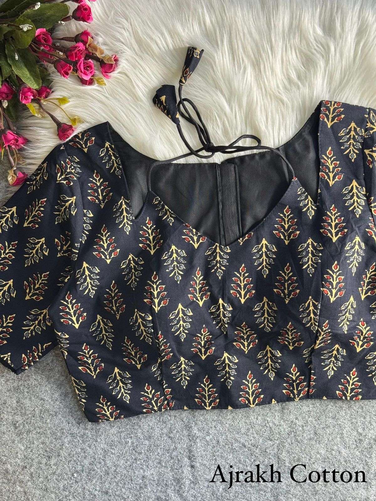 DESGINE - Beautiful cotton Print Partywear Blouse Heavy Stitching Heavy Padded Back open Style