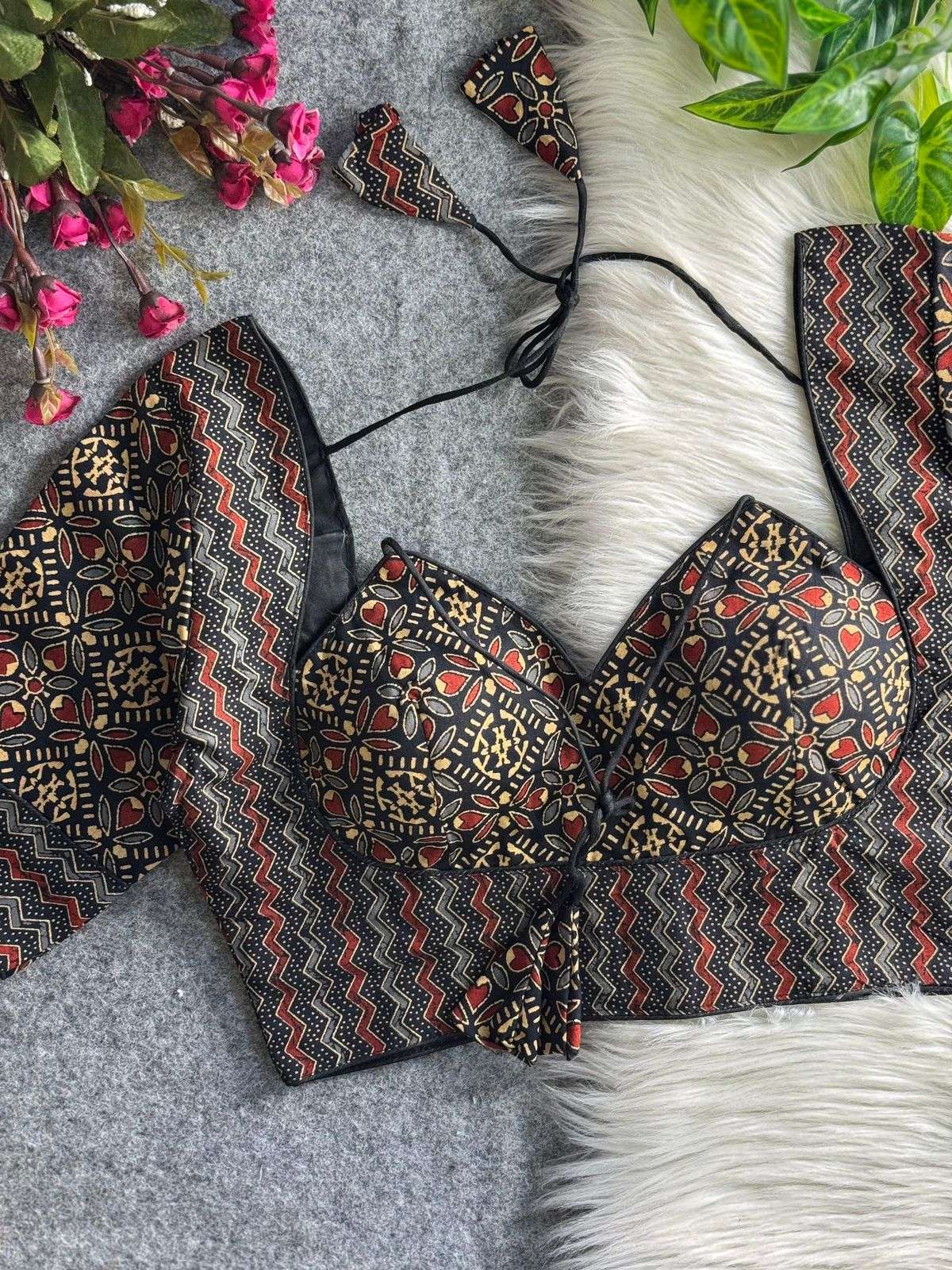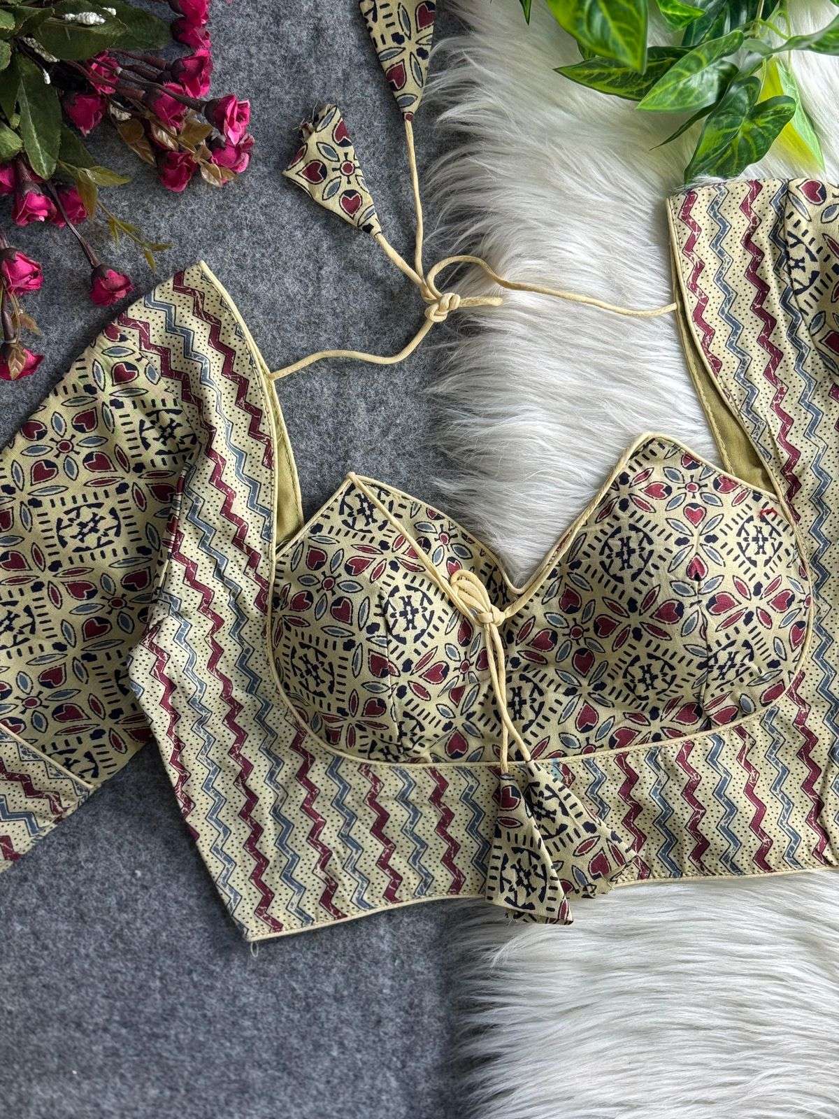 DESGINE - Beautiful cotton Print Partywear Blouse Heavy Stitching Heavy Padded Back open Style