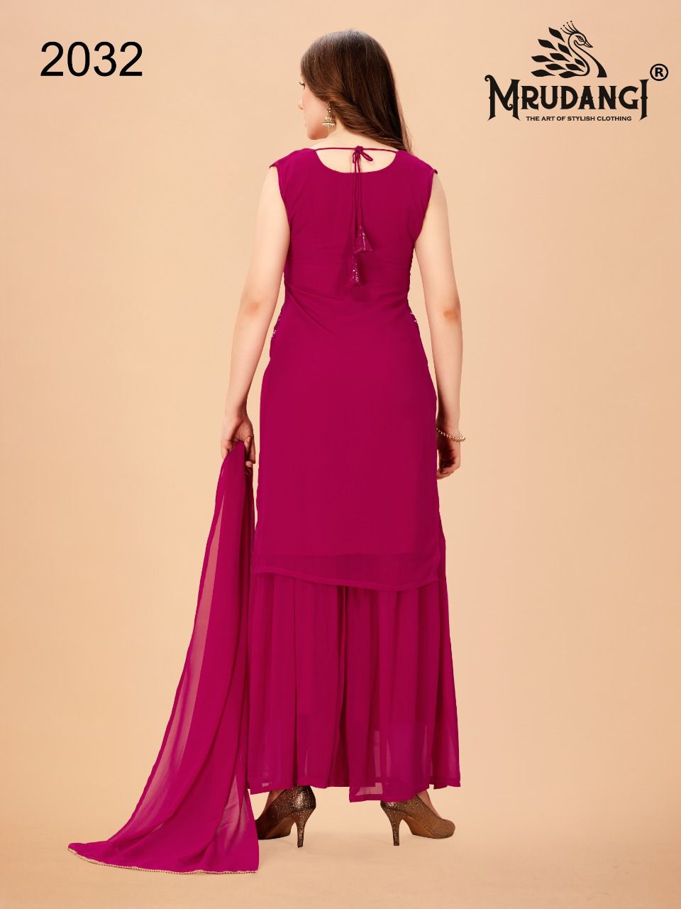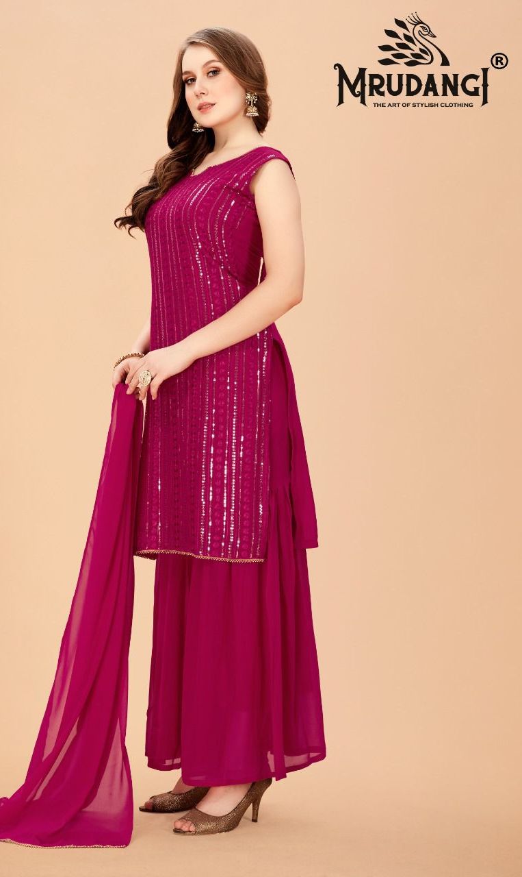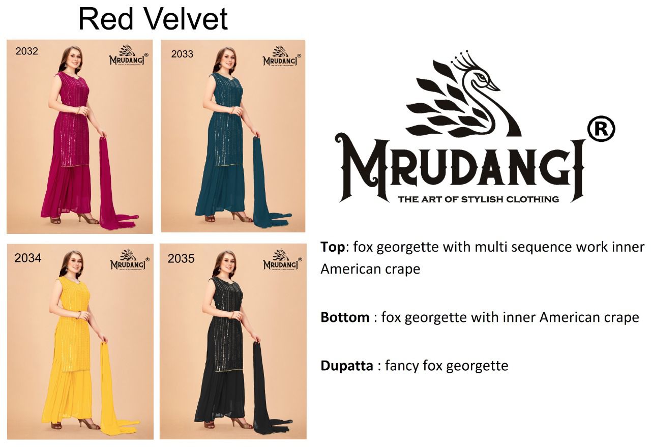Red Velvet Kurti By Mrudangi Designer With Work Georgette Kurti With Bottom And Dupatta Are Available At Wholesale Price