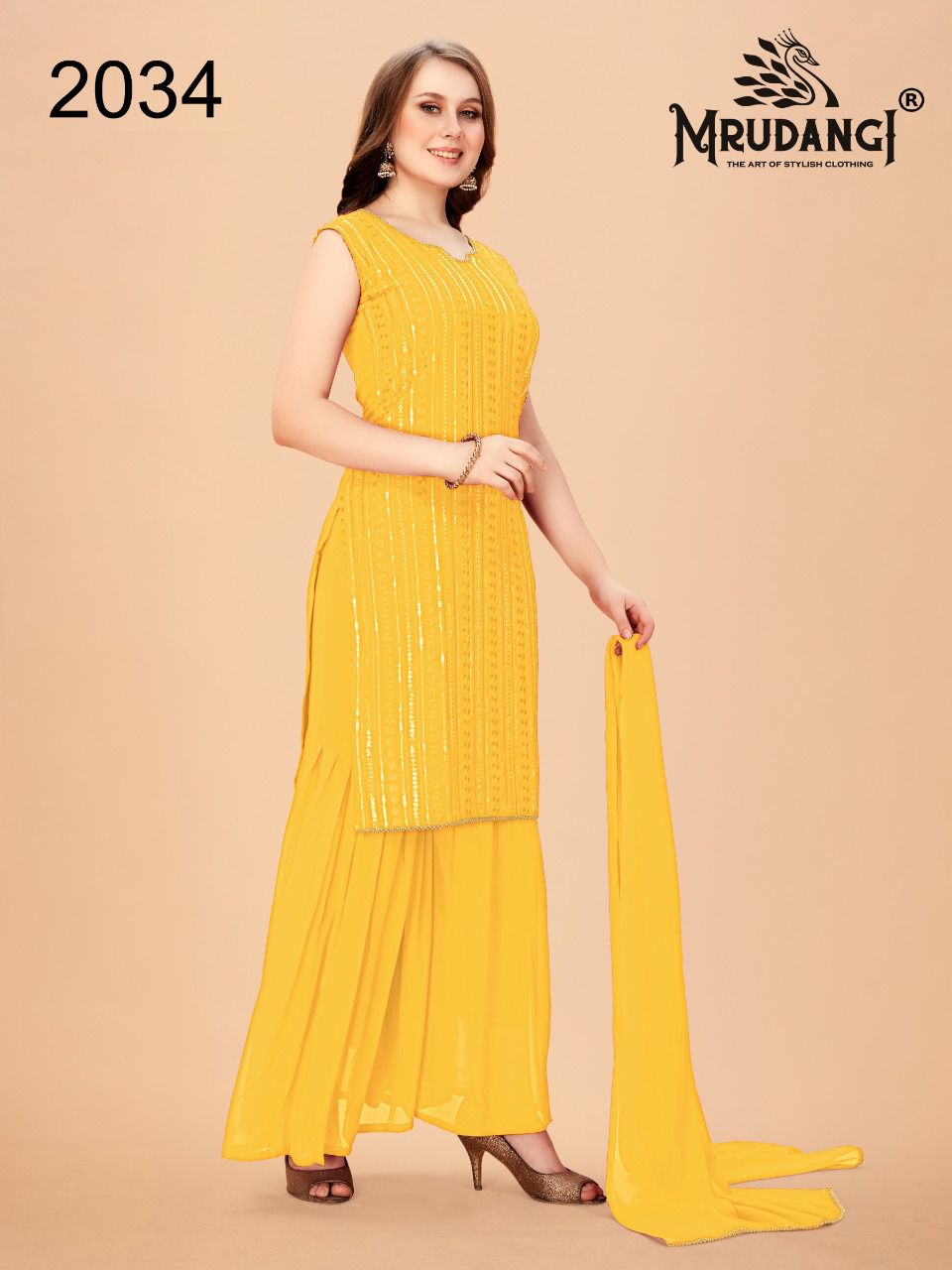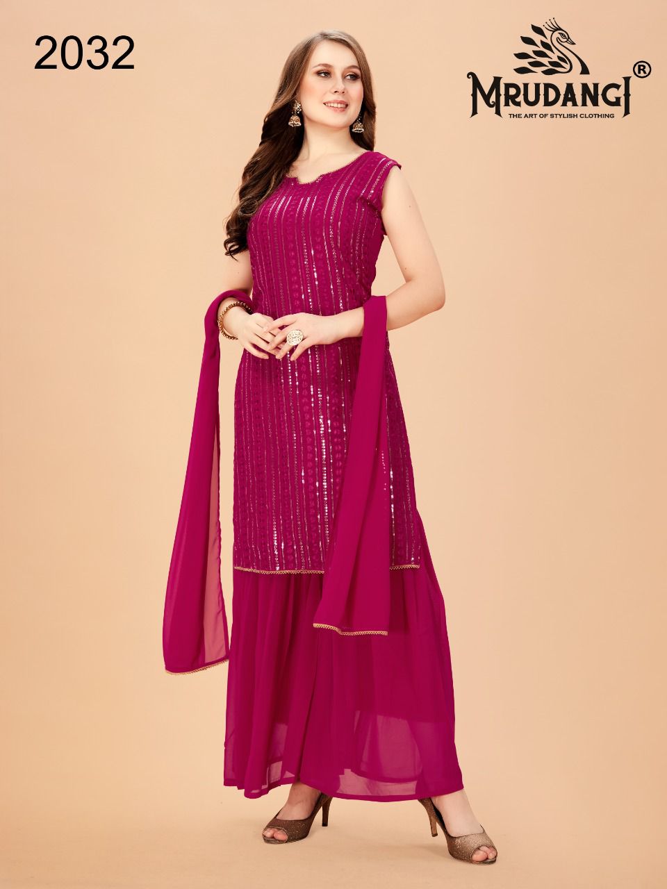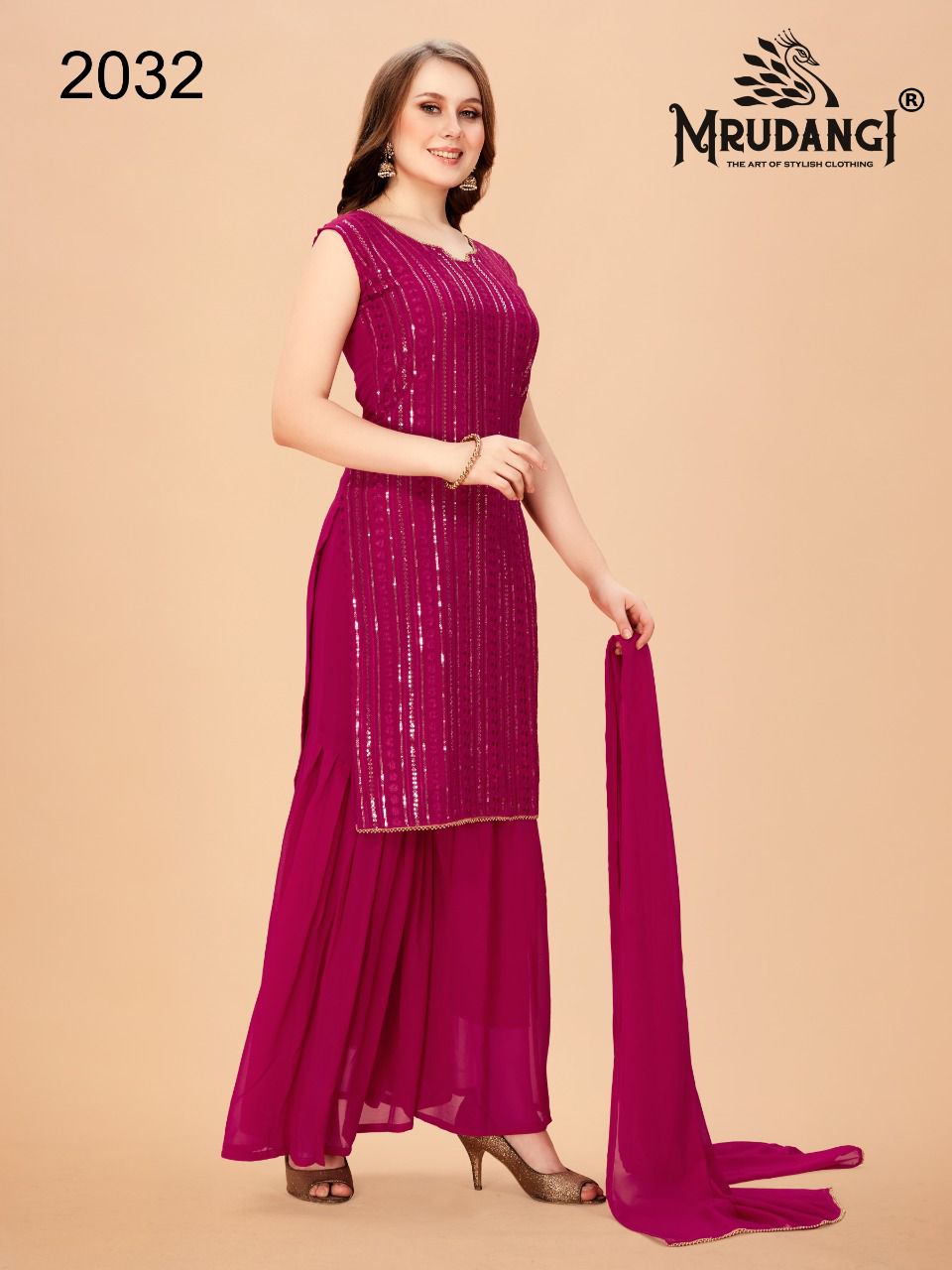 Red Velvet Kurti By Mrudangi Designer With Work Georgette Kurti With Bottom And Dupatta Are Available At Wholesale Price