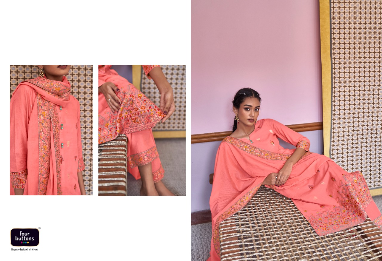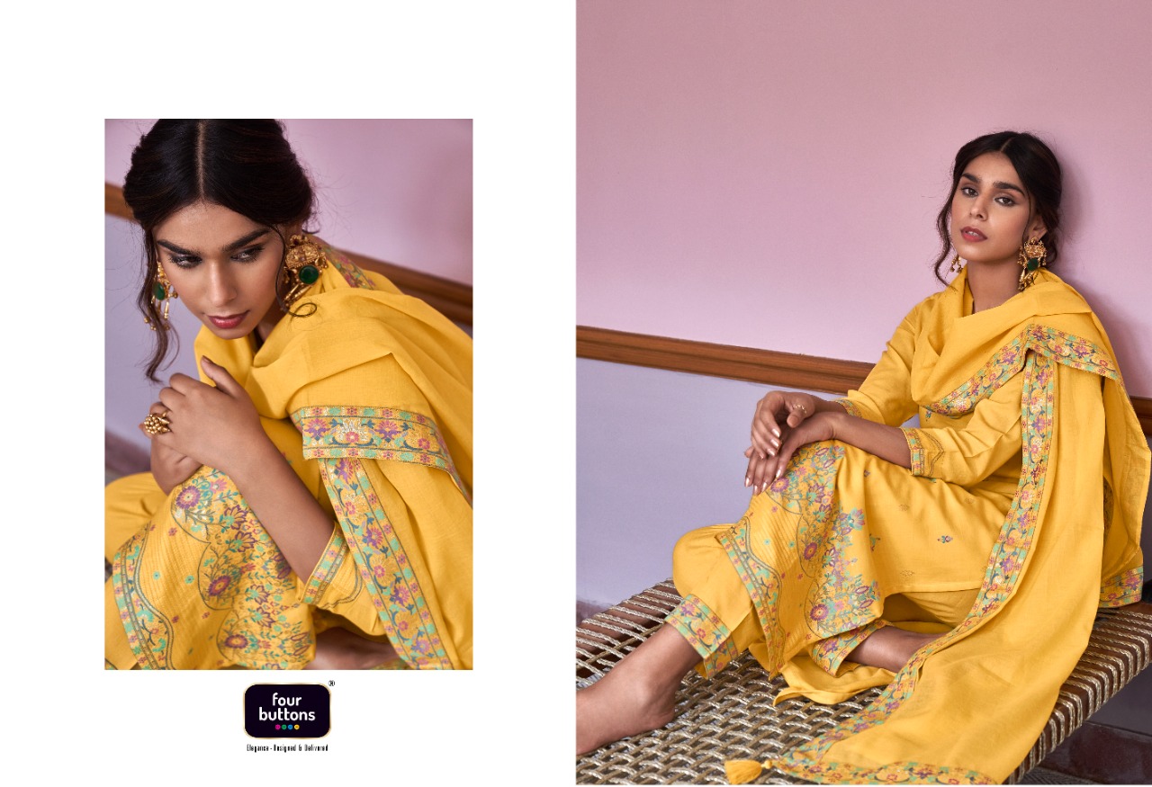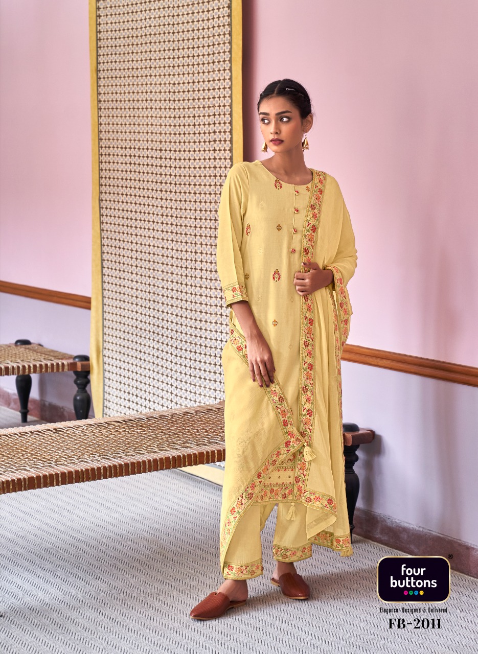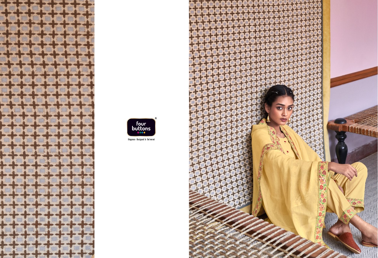 Resham Kurti By Four Buttons Designer With Work Cotton Kurti With Pant And Dupatta Are Available At Wholesale Price