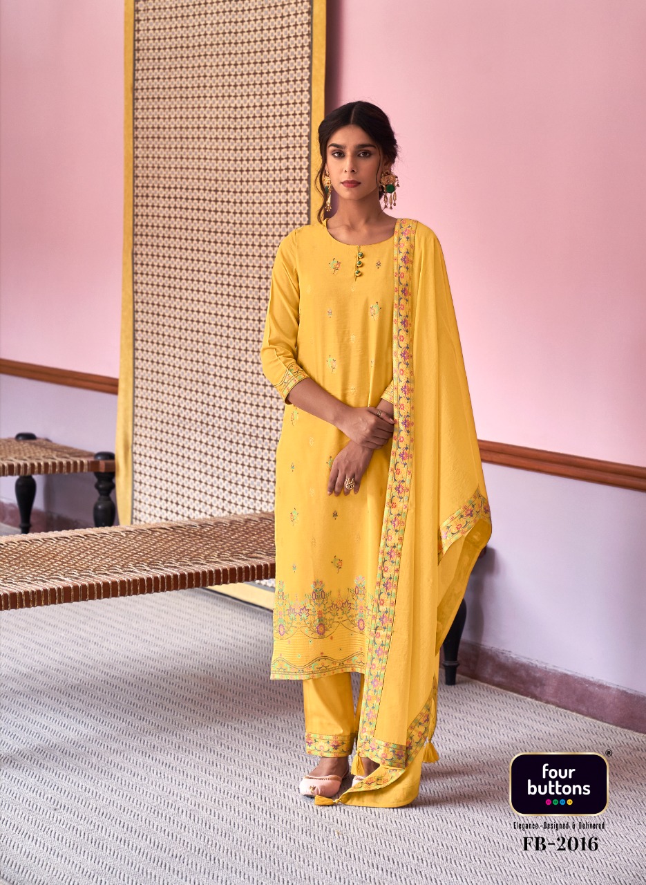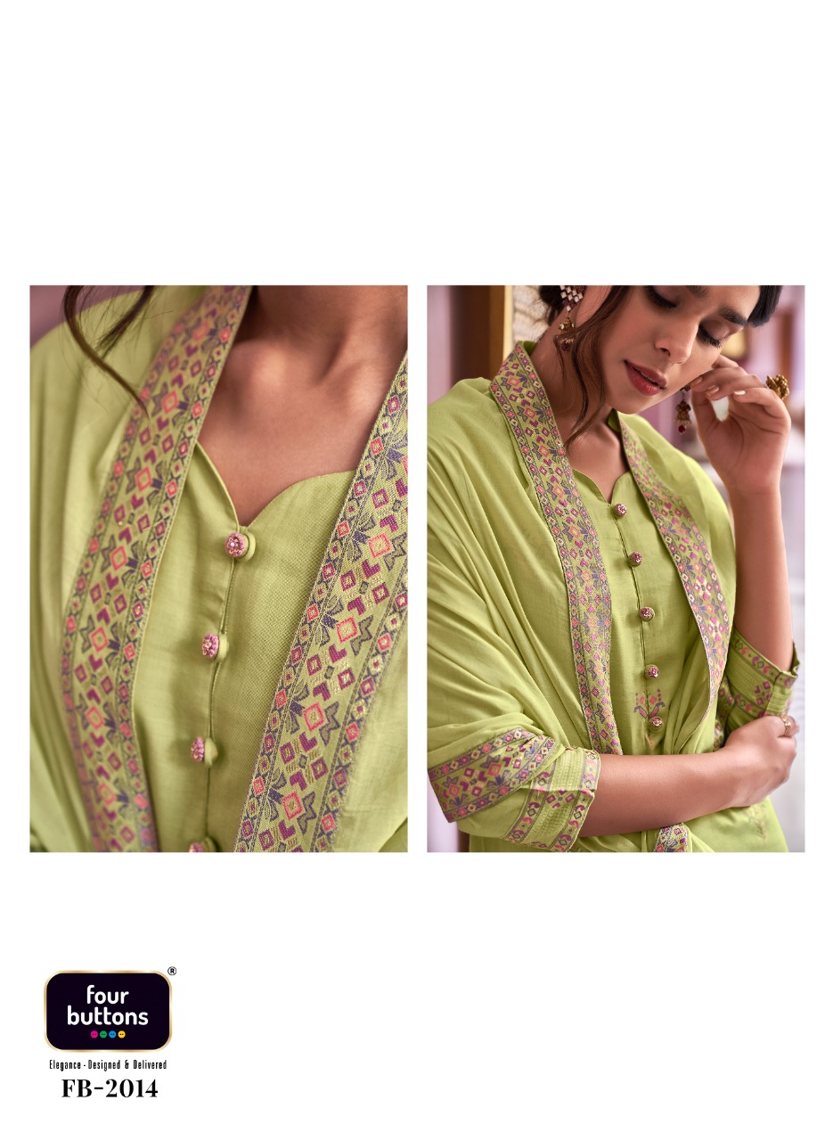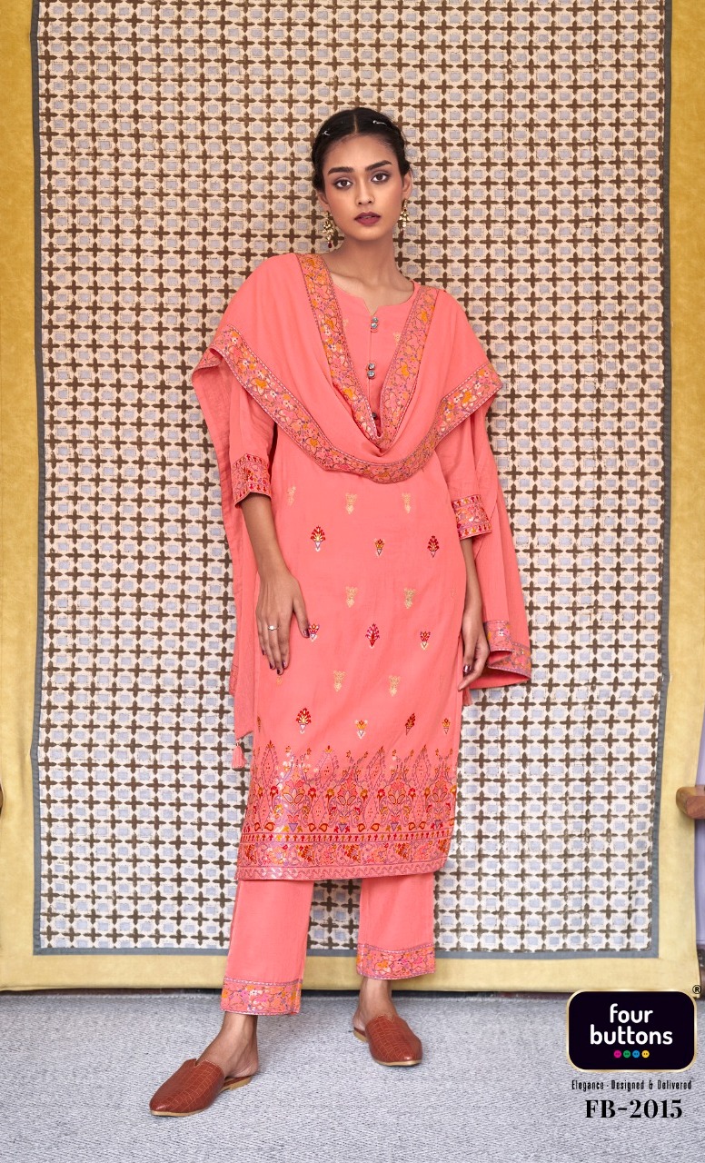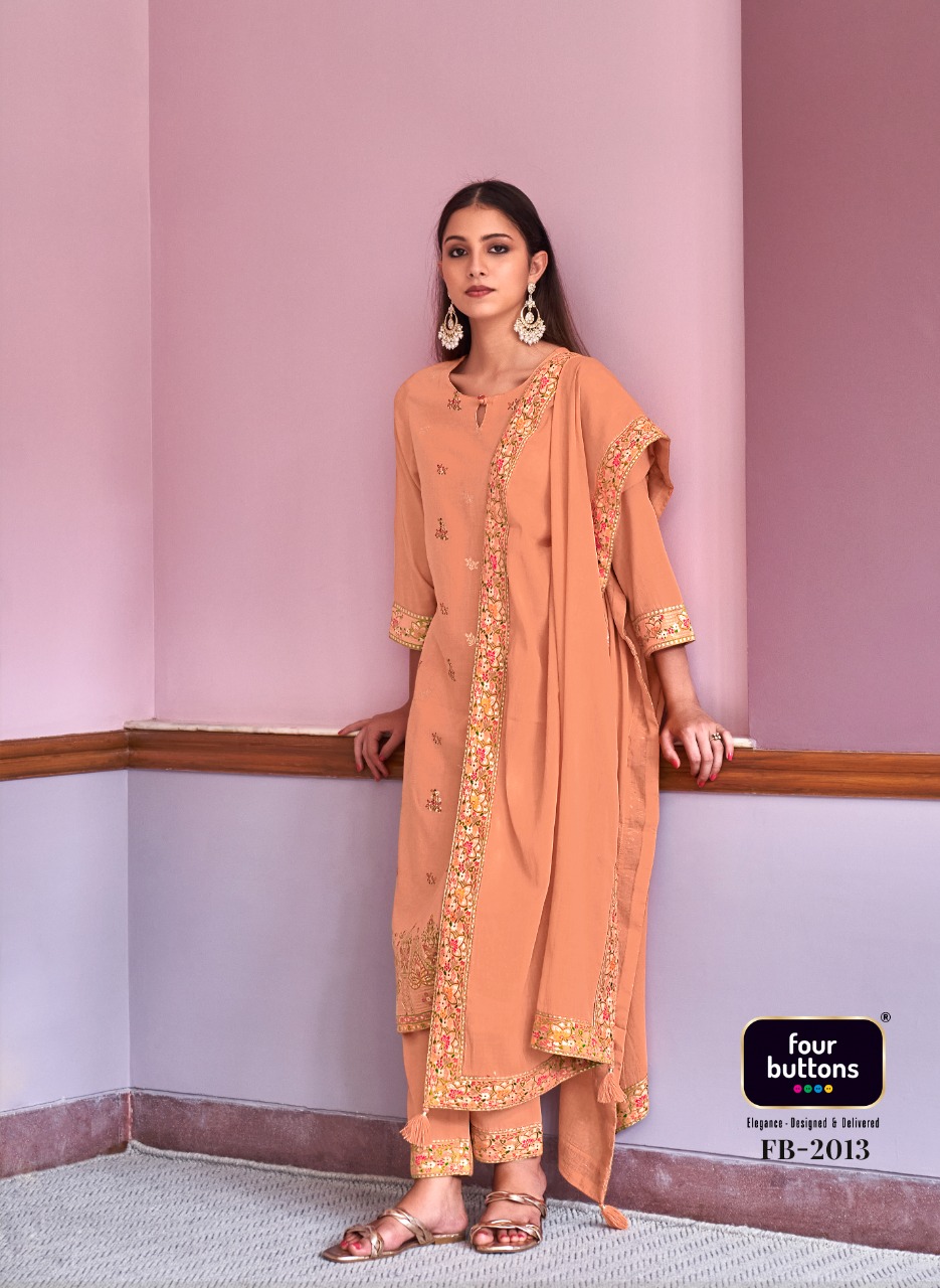 Resham Kurti By Four Buttons Designer With Work Cotton Kurti With Pant And Dupatta Are Available At Wholesale Price