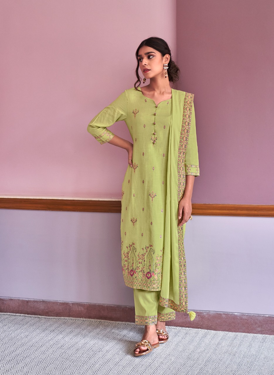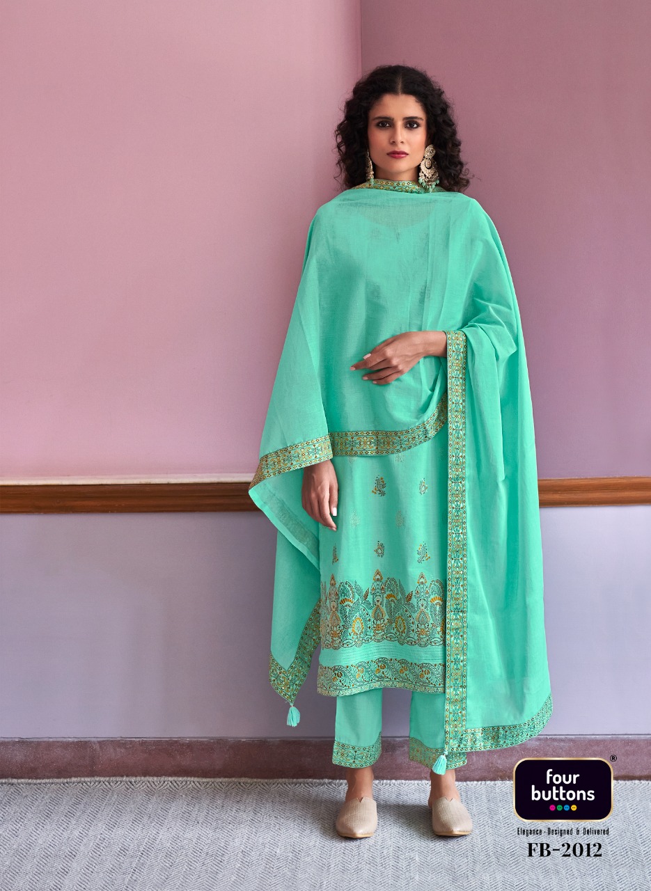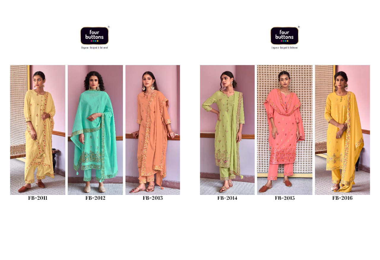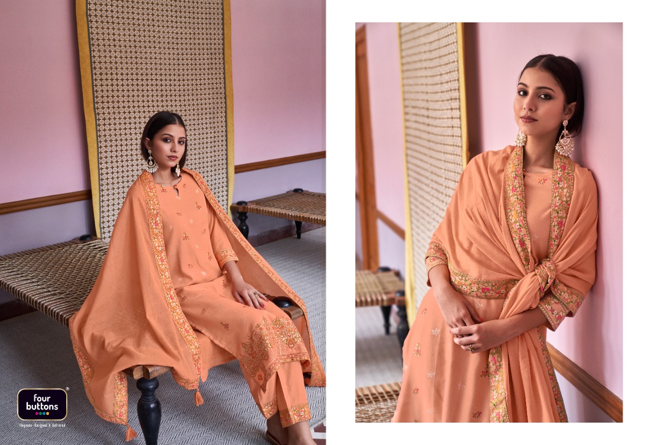 Resham Kurti By Four Buttons Designer With Work Cotton Kurti With Pant And Dupatta Are Available At Wholesale Price