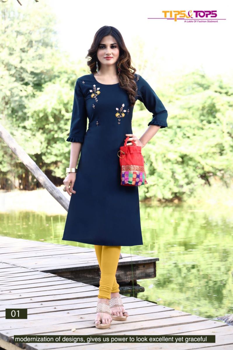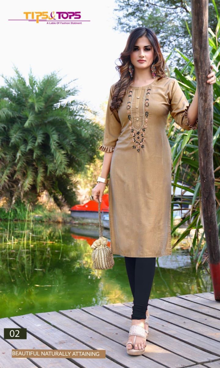 Resham Vol-7 Kurti By Tips & Tops Designer With Hamd Work Viscose Muslin Silk Kurtis Are Available At Wholesale Price