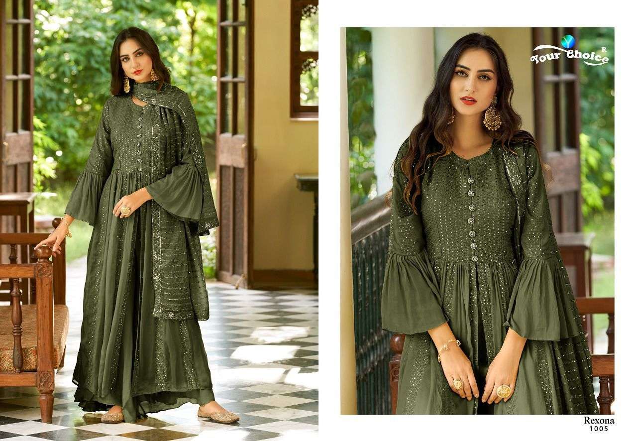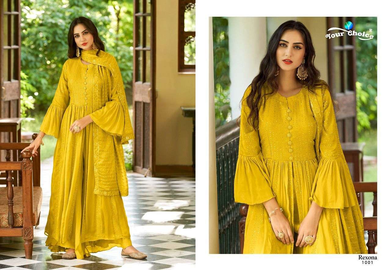 REXONA GOLD BY YOUR CHOICE DESIGNER WITH WORK CHINON PARTY WEAR SUITS ARE AVAILABLE AT WHOLESALE PRICE
