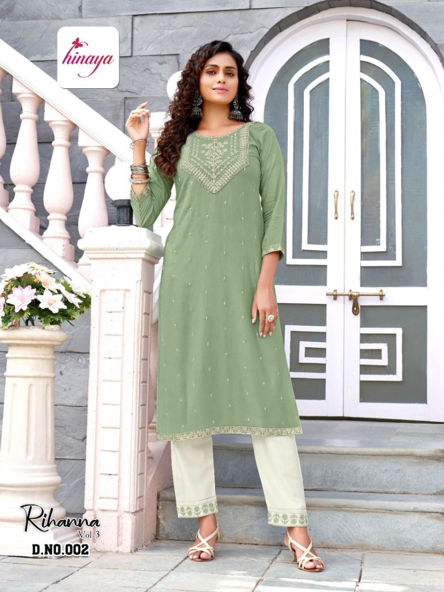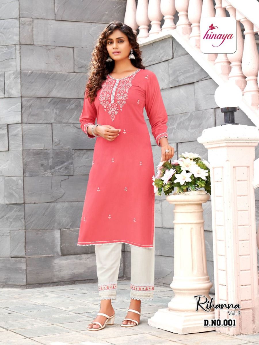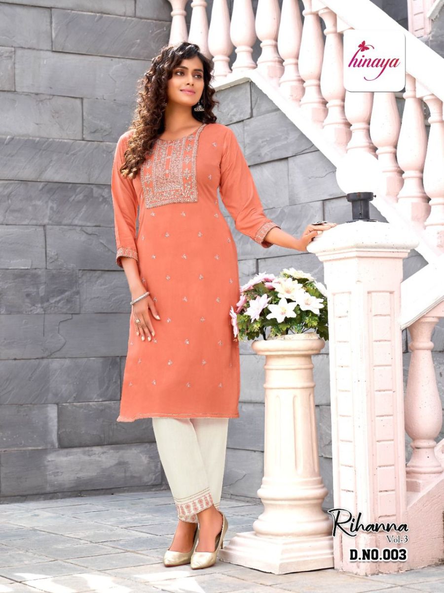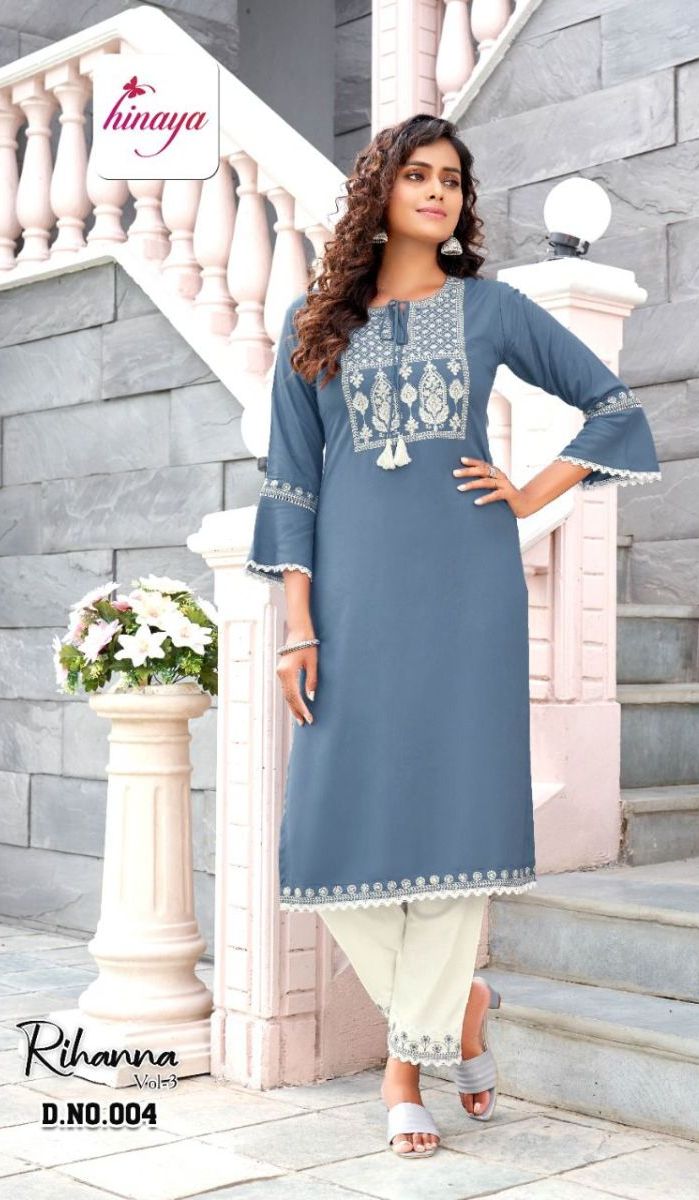 Rihanna Vol-3 Kurti By Hinaya Designer With Print And Work Rayon Kurti With Pant Are Available At Wholesale Price