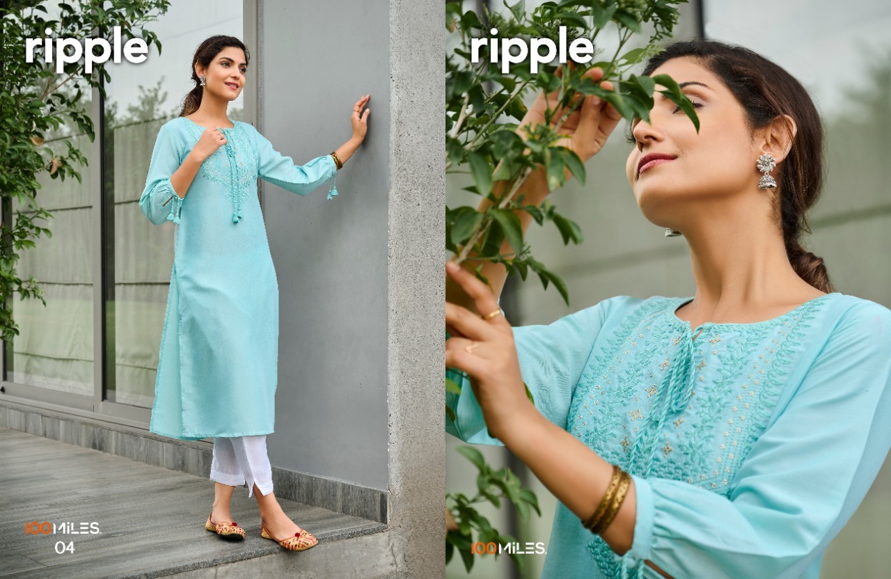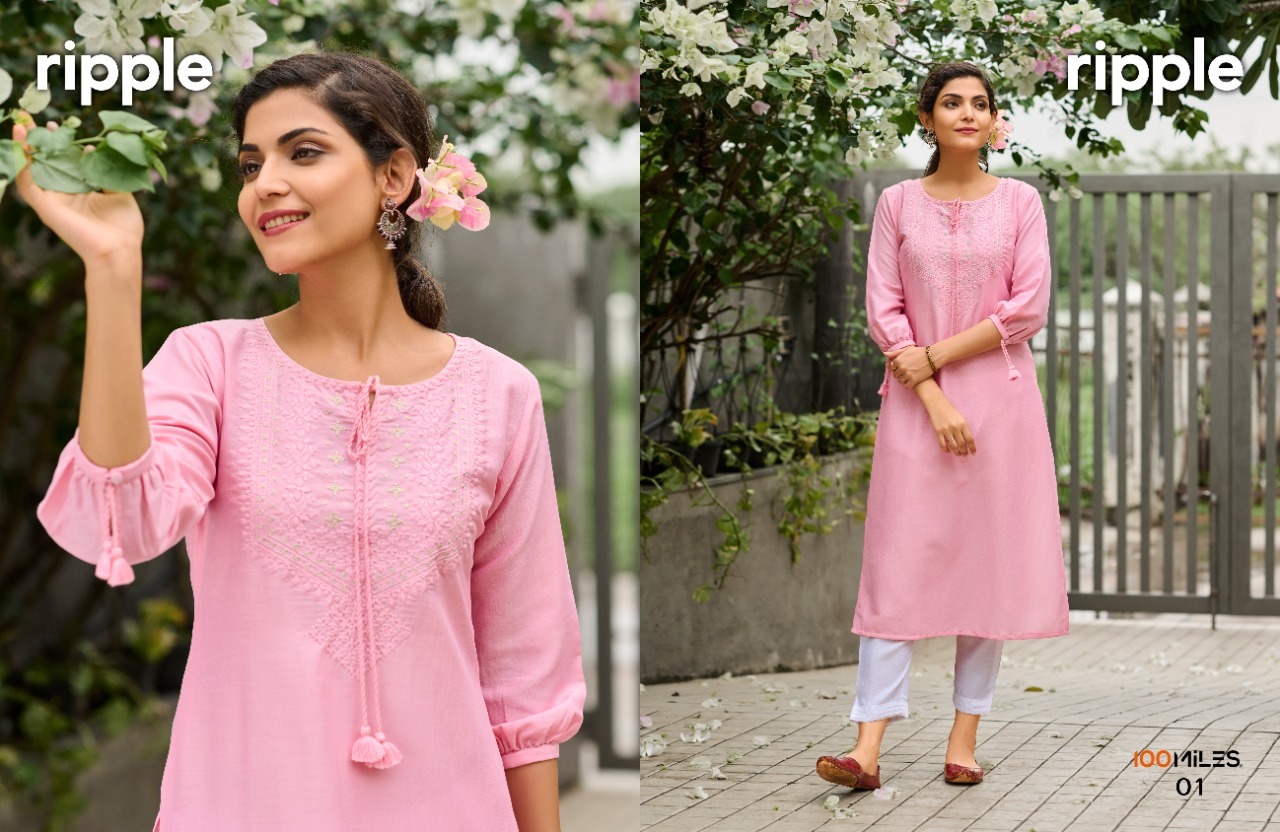 Ripple Kurti By 100 Miles Designer With Chikenkari Work Fancy Long Kurtis Are Available At Wholesale Price