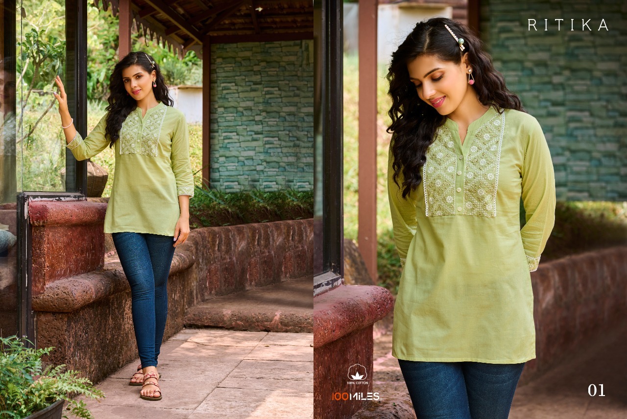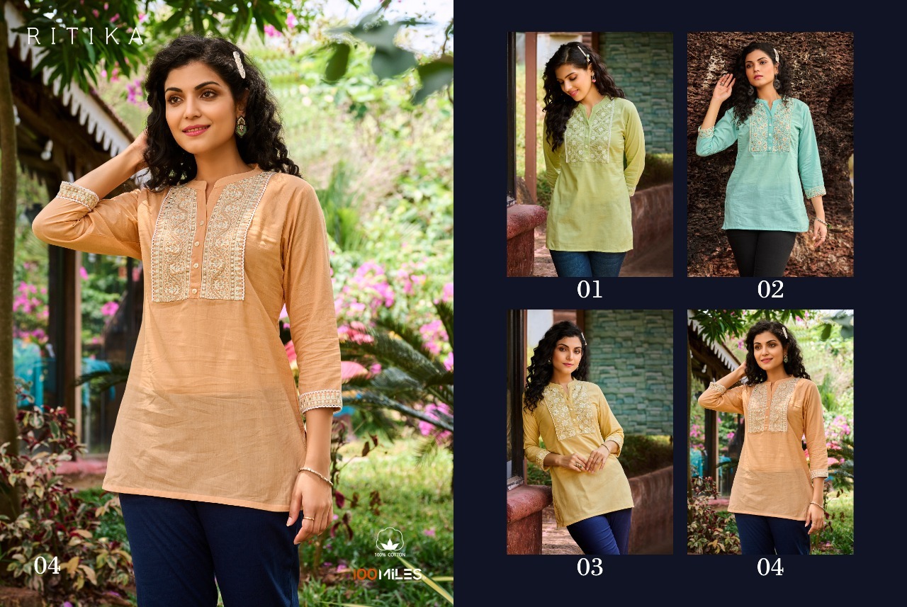 Ritika Tops By 100 Miles Designer With Lucknowi Work Cotton Tops Are Available At Wholesale Price