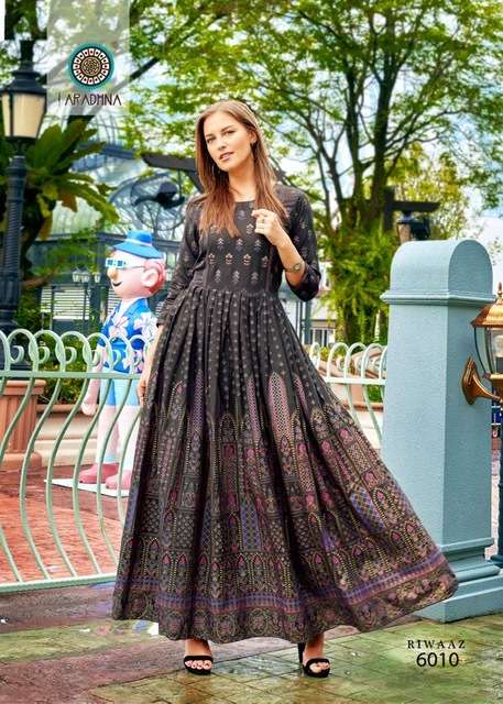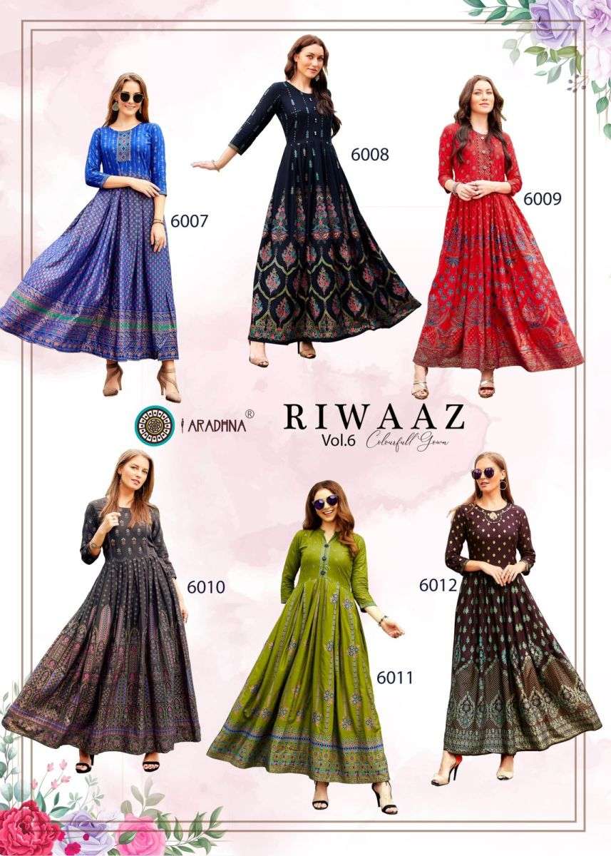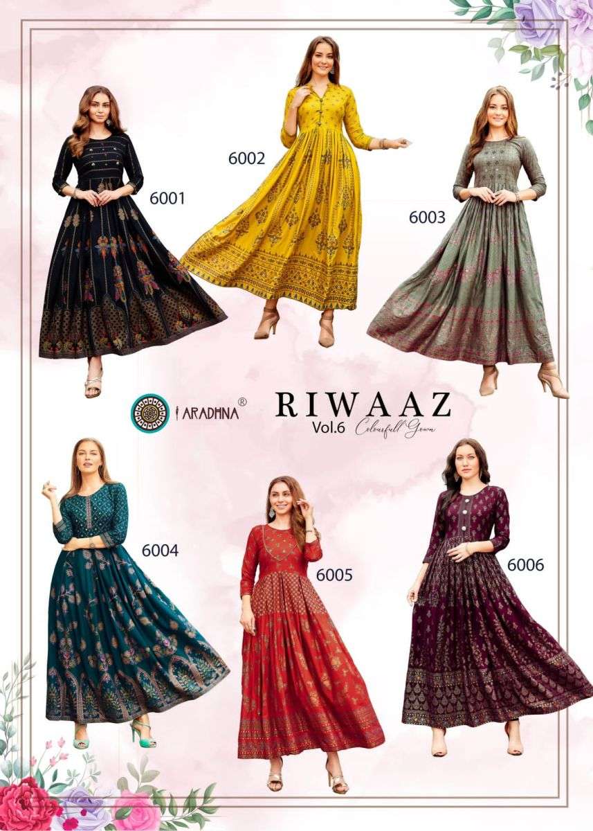 RIWAAZ VOL-6 GOEN BY ARADHANA DESIGNER WITH PRINTED RAYON LONG GOWNS ARE AVAILABLE AT WHOLESALE PRICE