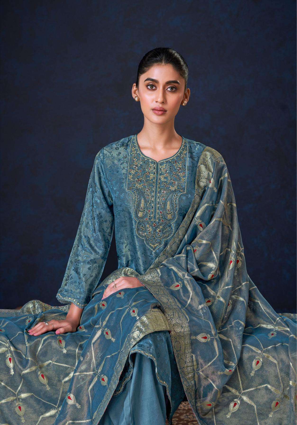 BOTTOM - MULBERRY SILK PAIRED WITH AN ELEGANTLY EMB. PLAZZO