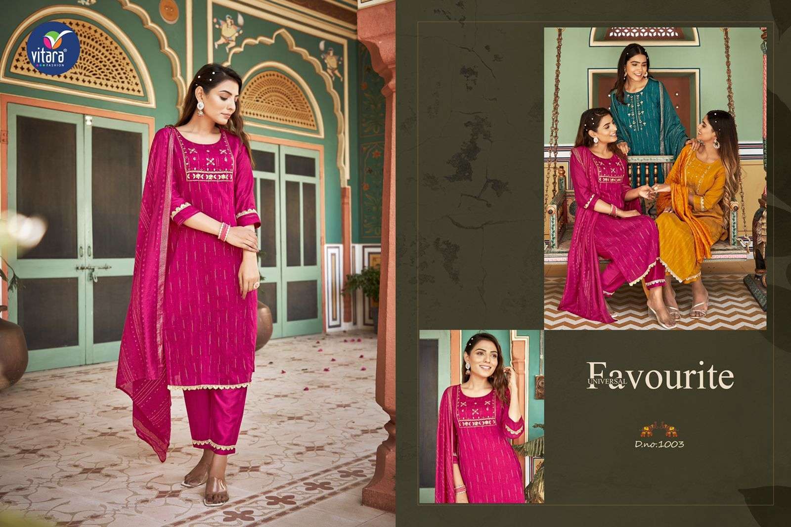 RIWAZ KURTI BY VITARA FASHION DESIGNER WITH WORK JACQUARD KURTI WITH PANT AND DUPATTA ARE AVAILABLE AT WHOLESALE PRICE