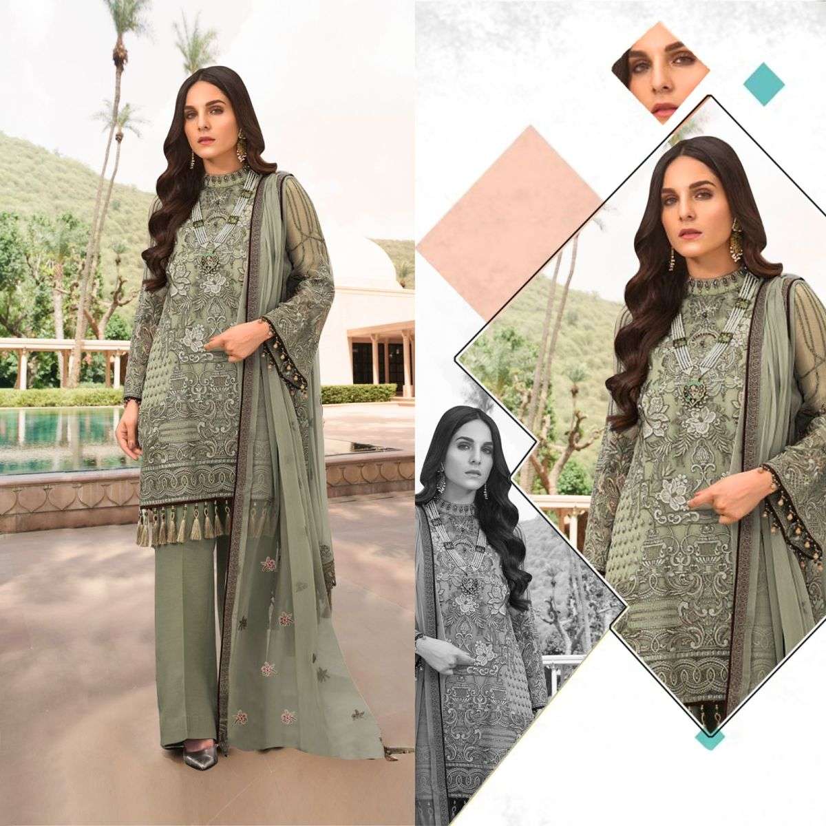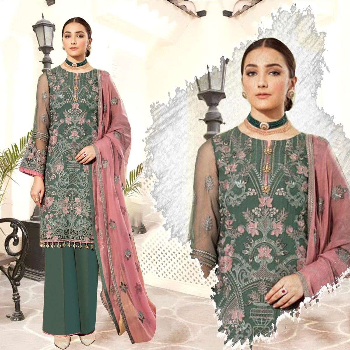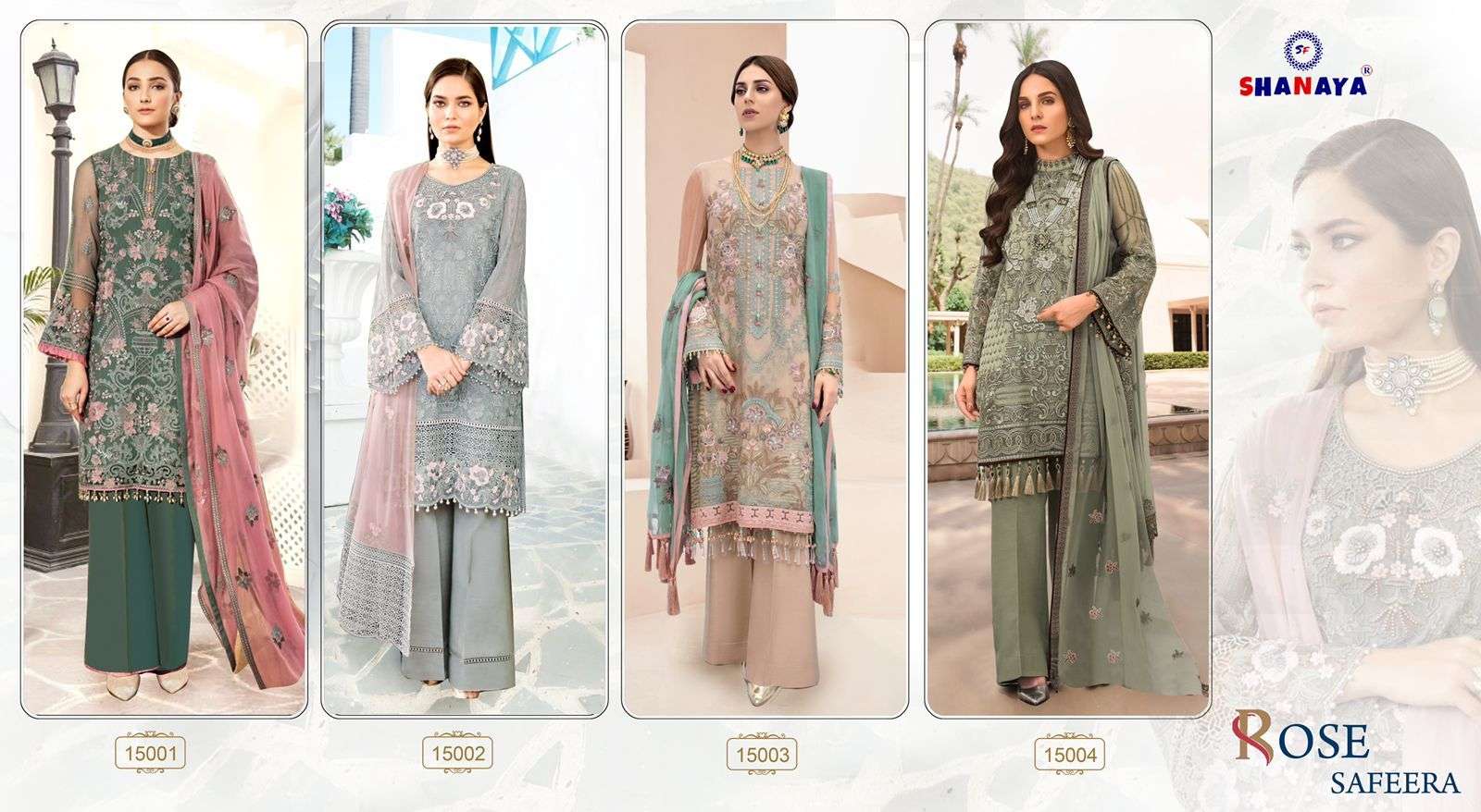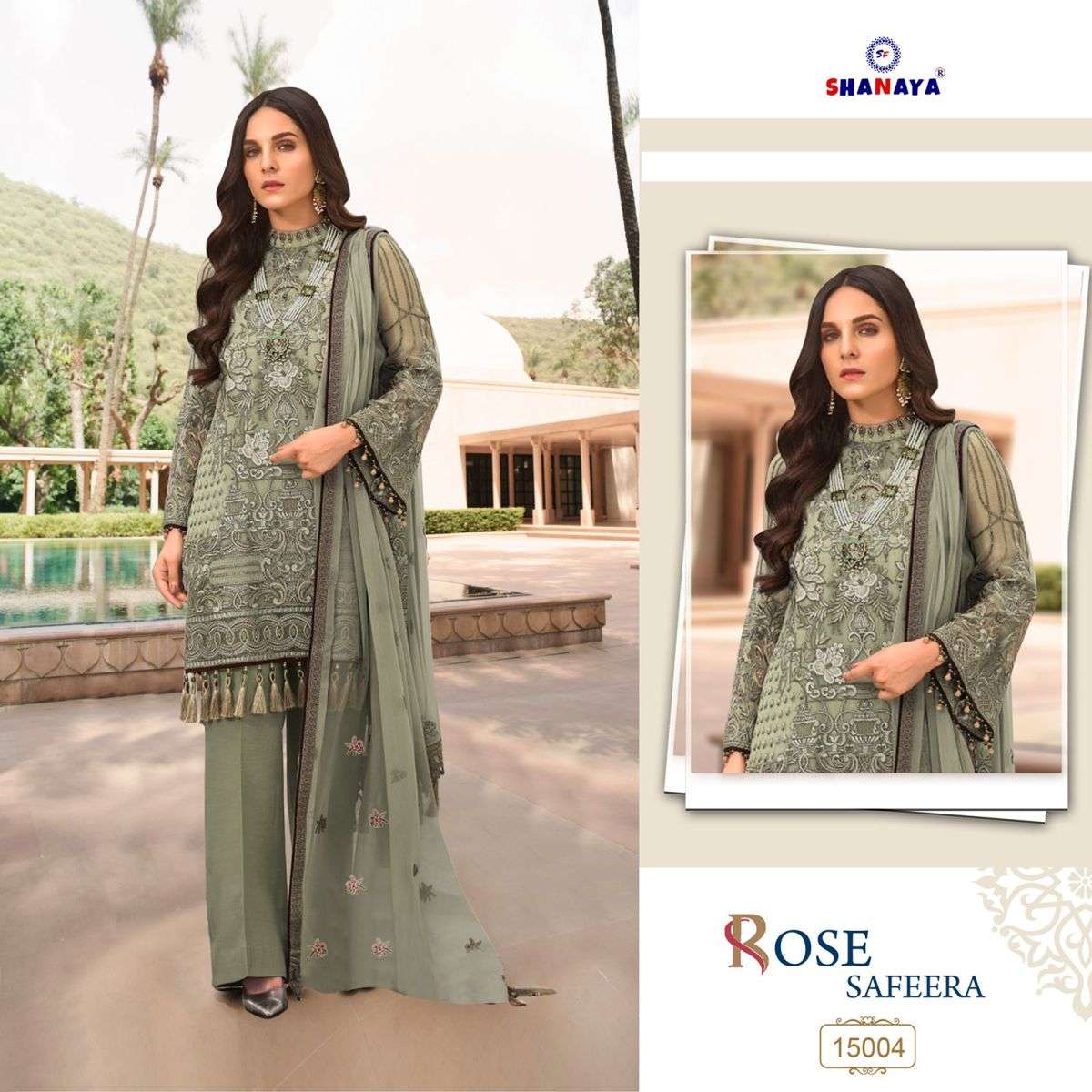 ROSE SAFEERA BY SHANAYA DESIGNER WITH WORK PAKISTANI STYLE GEORGETTE SUITS ARE AVAILABLE AT WHOLESALE PRICE