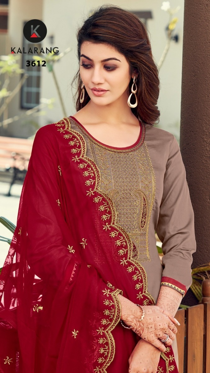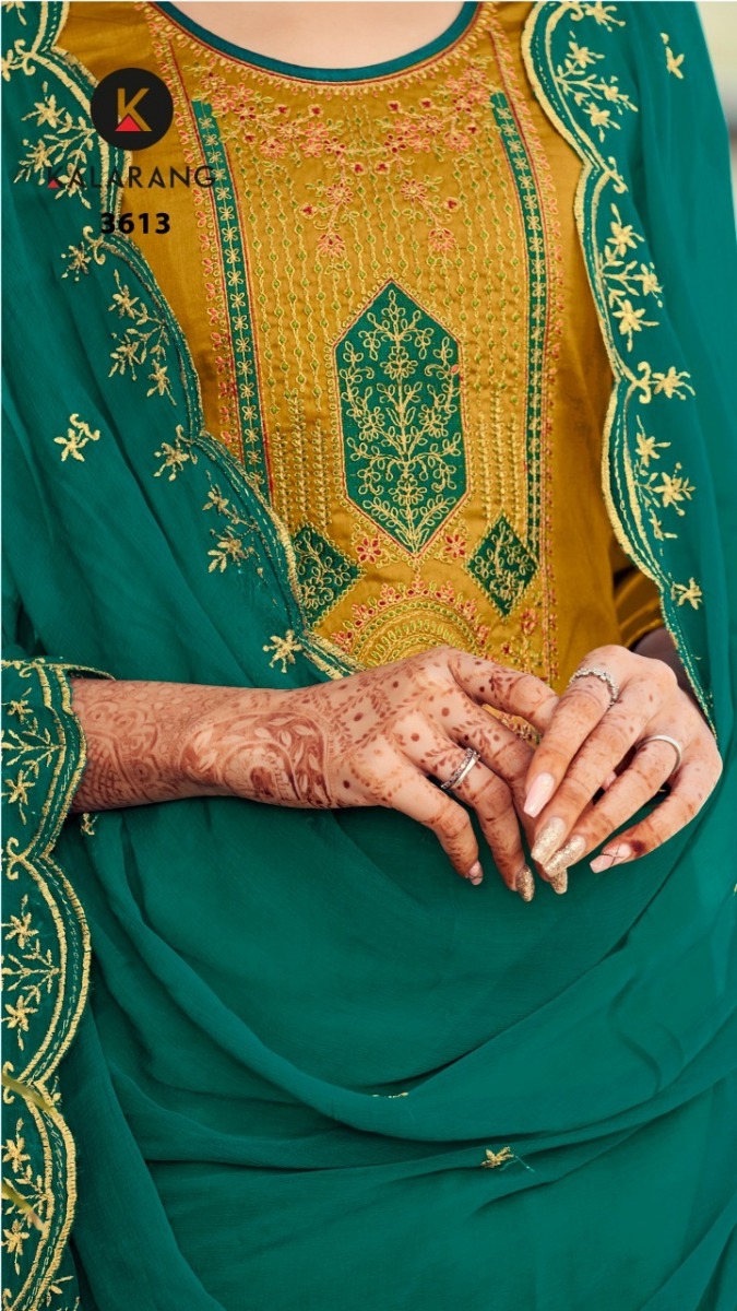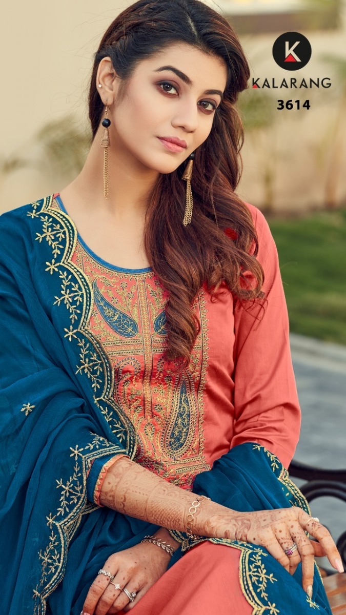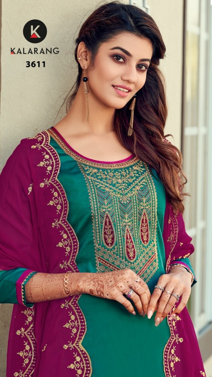 Roshni By Kalarang Designer With Embroidery Work Jam Silk Cotton Suits Are Available At Wholesale Price
