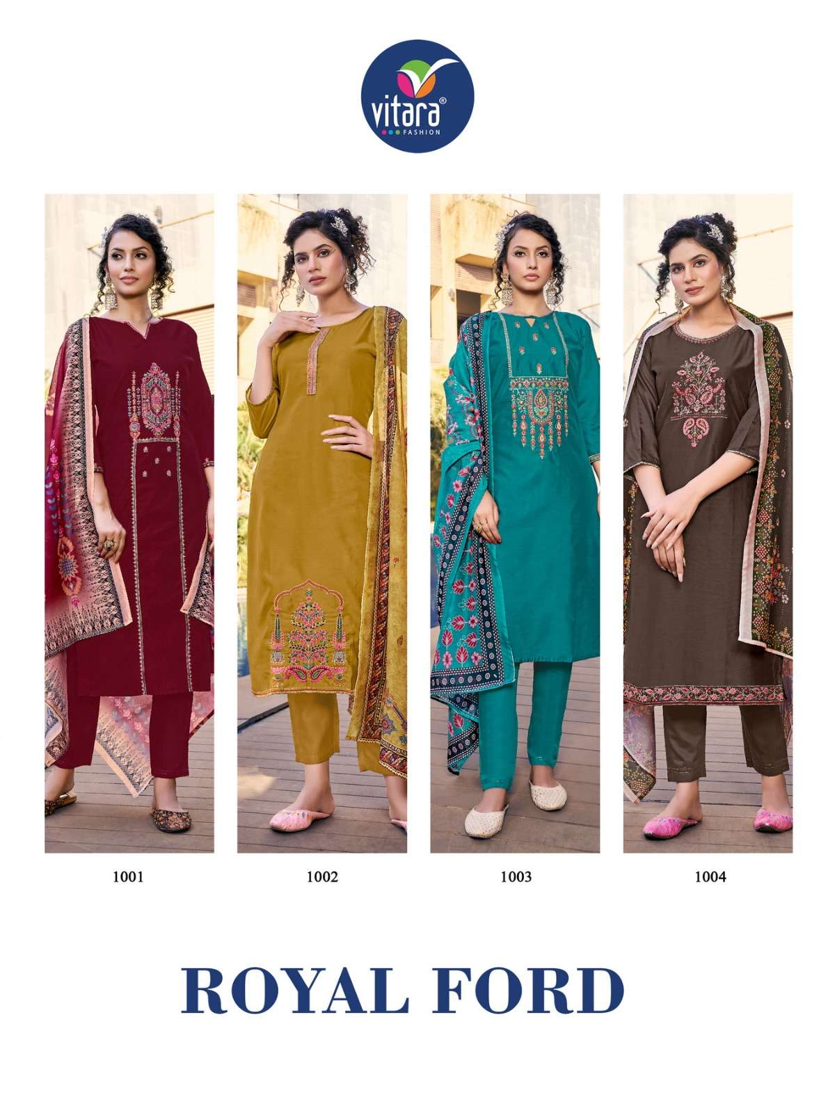 ROYAL FORD KURTI BY VITARA FASHION DESIGNER WITH WORK VISCOSE KURTI WITH PANT AND DUPATTA ARE AVAILABLE AT WHOLESALE PRICE