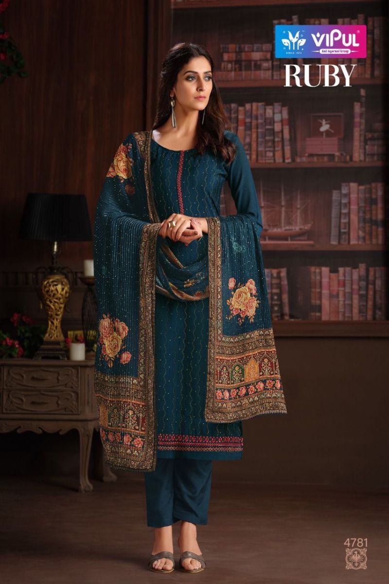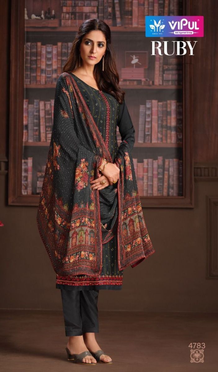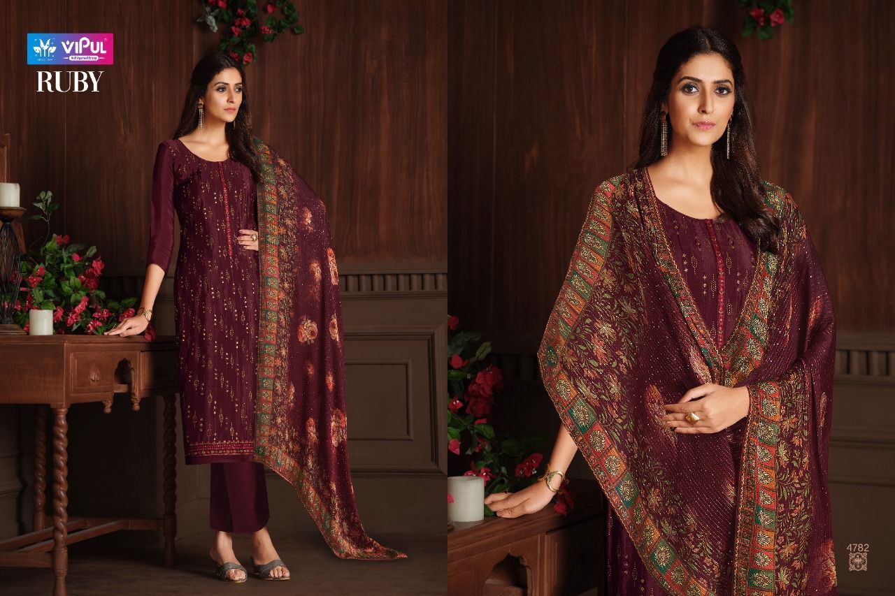 Ruby By Vipul Designer With Embroidery Work Chinon Straight Suits Are Available In Singles At Wholesale Price