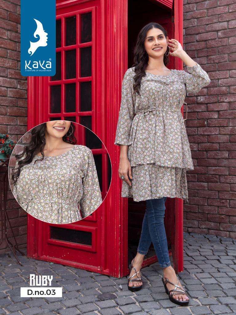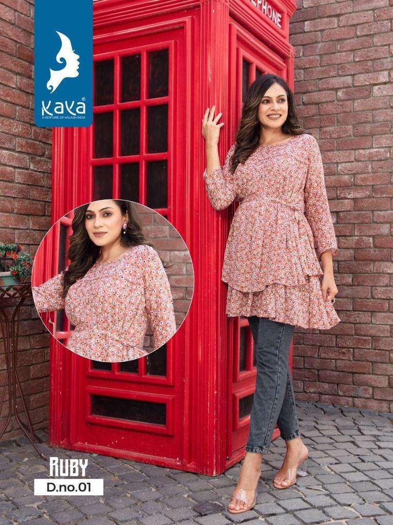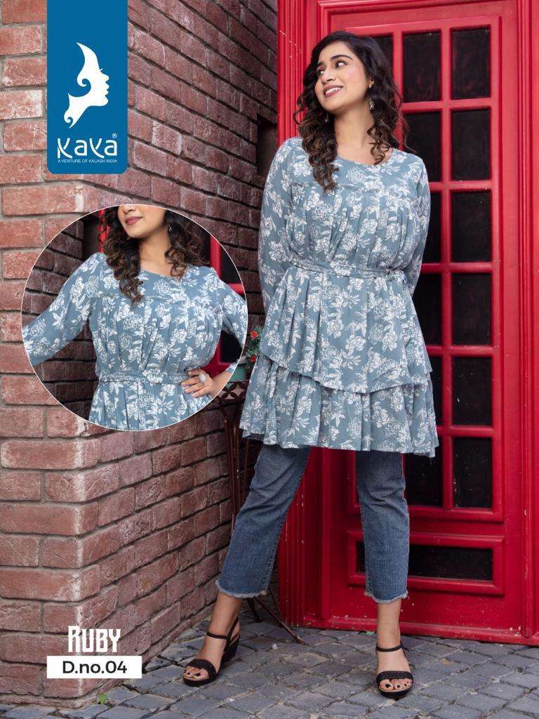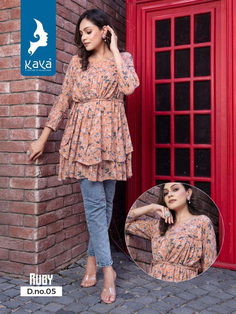 RUBY TOP BY KAYA DESIGNER WITH PRINTED RAYON RINKLE SHORT KURTIS ARE AVAILABLE AT WHOLESALE PRICE