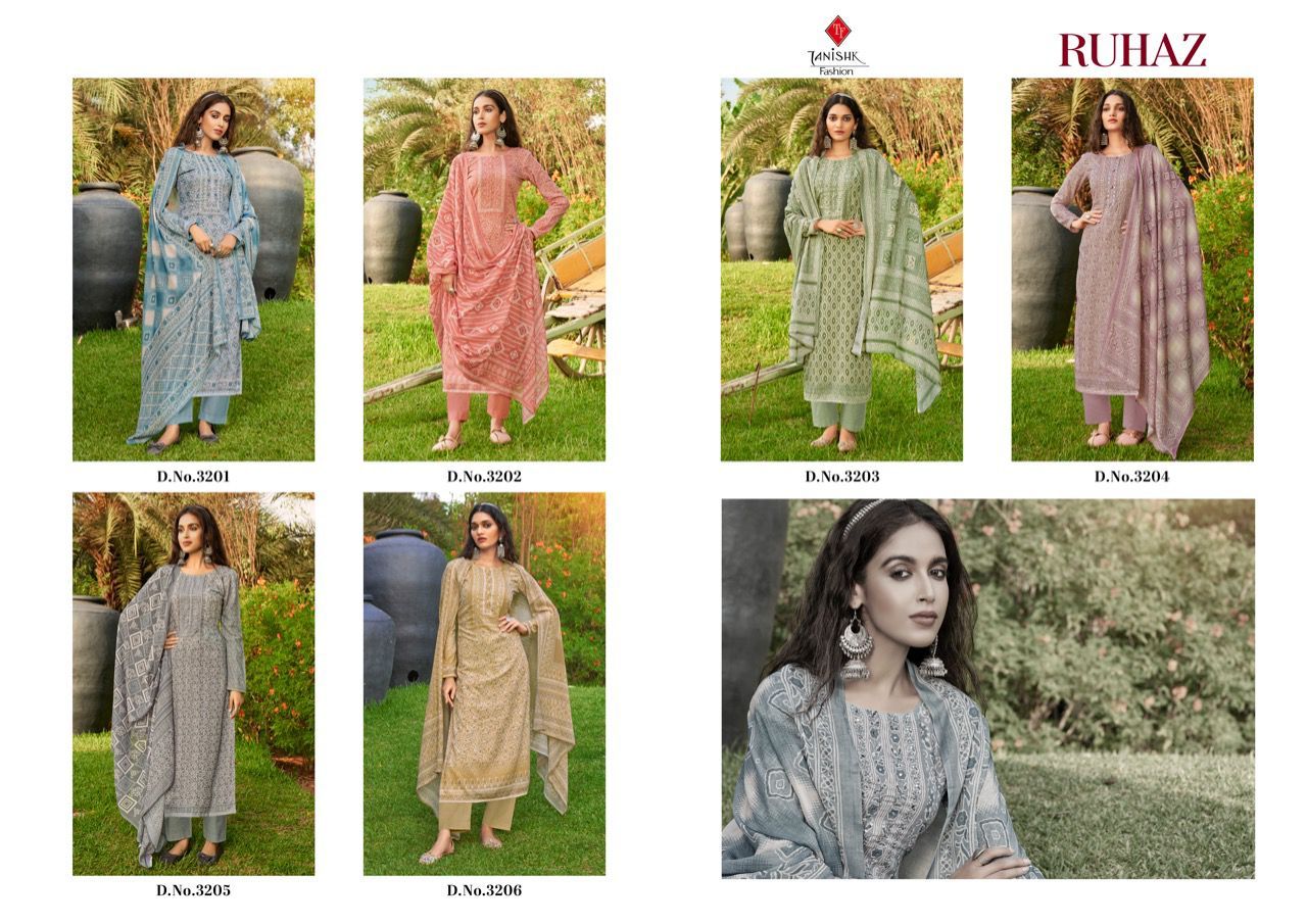 Ruhaz By Tanishk Fashion Designer With Digital Printed And Work Mal Cotton Suits Are Available At Wholesale Price