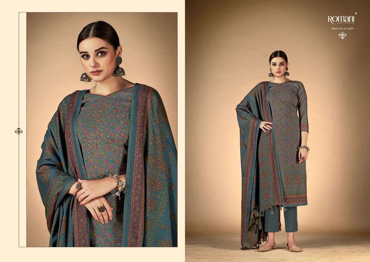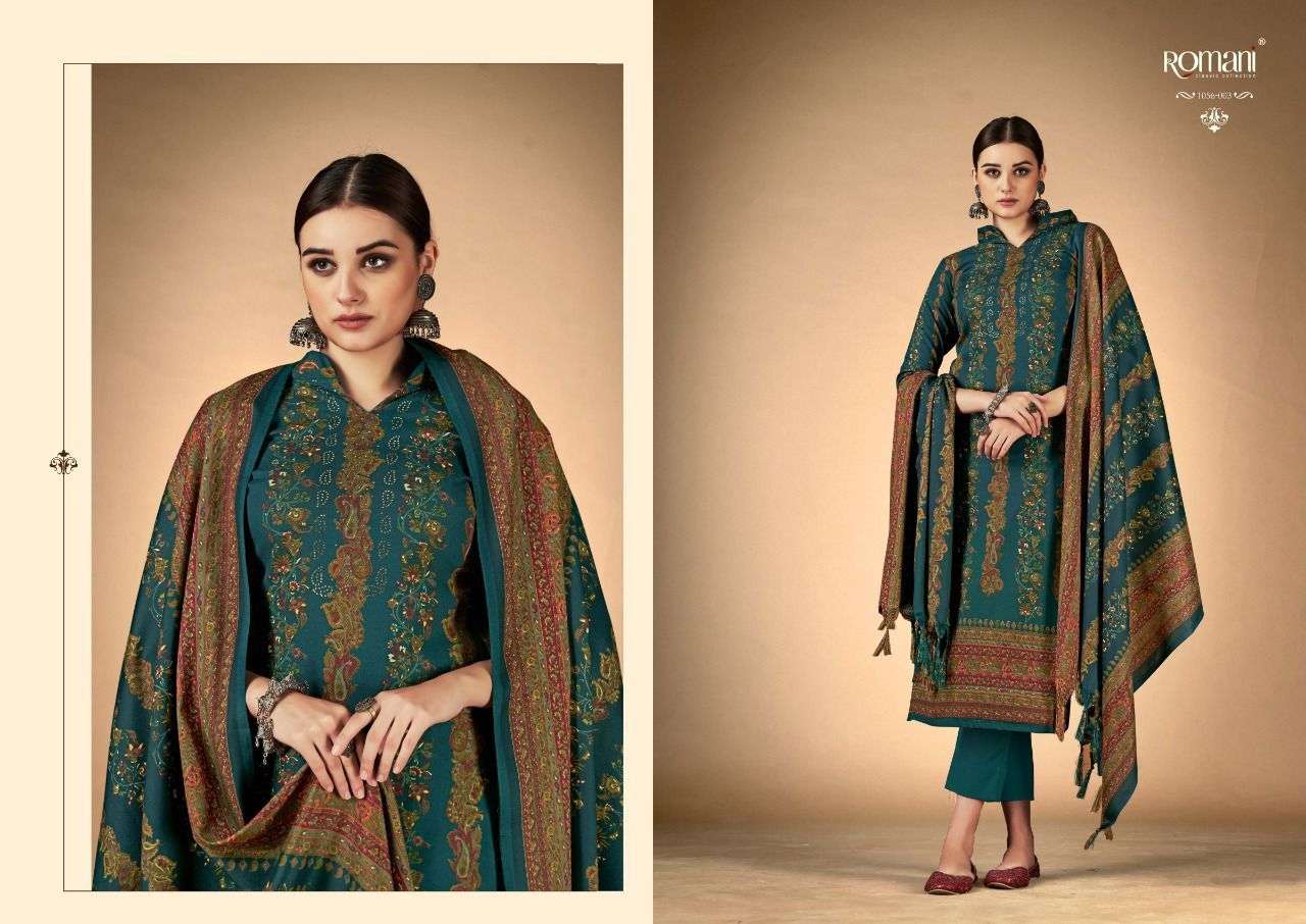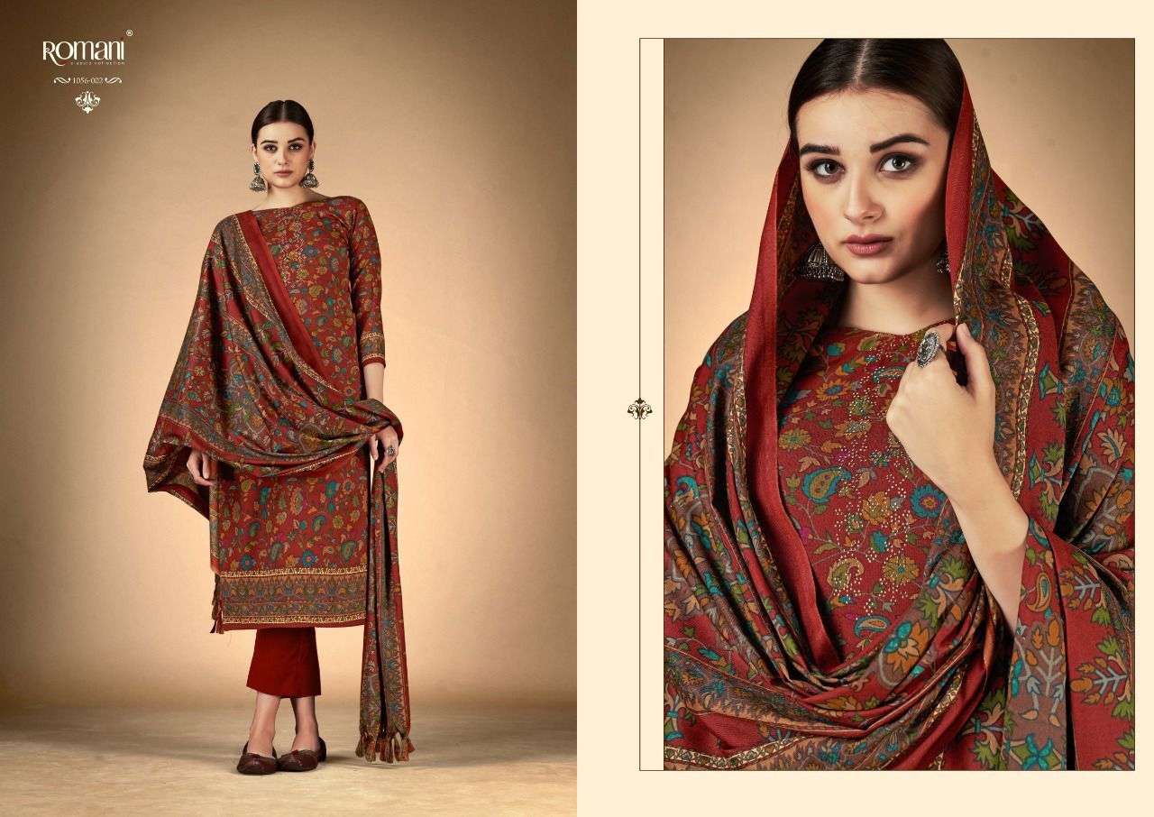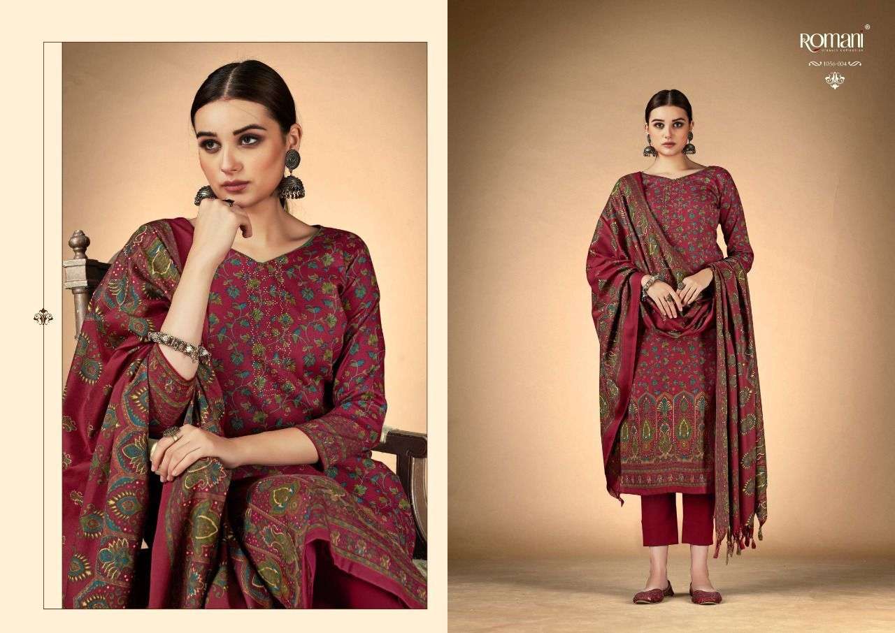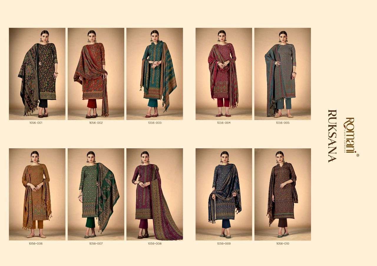 RUKSANA BY ROMANI DESIGNER WITH PRINTED PASHMINA SUITS ARE AVAILABLE AT WHOLESALE PRICE