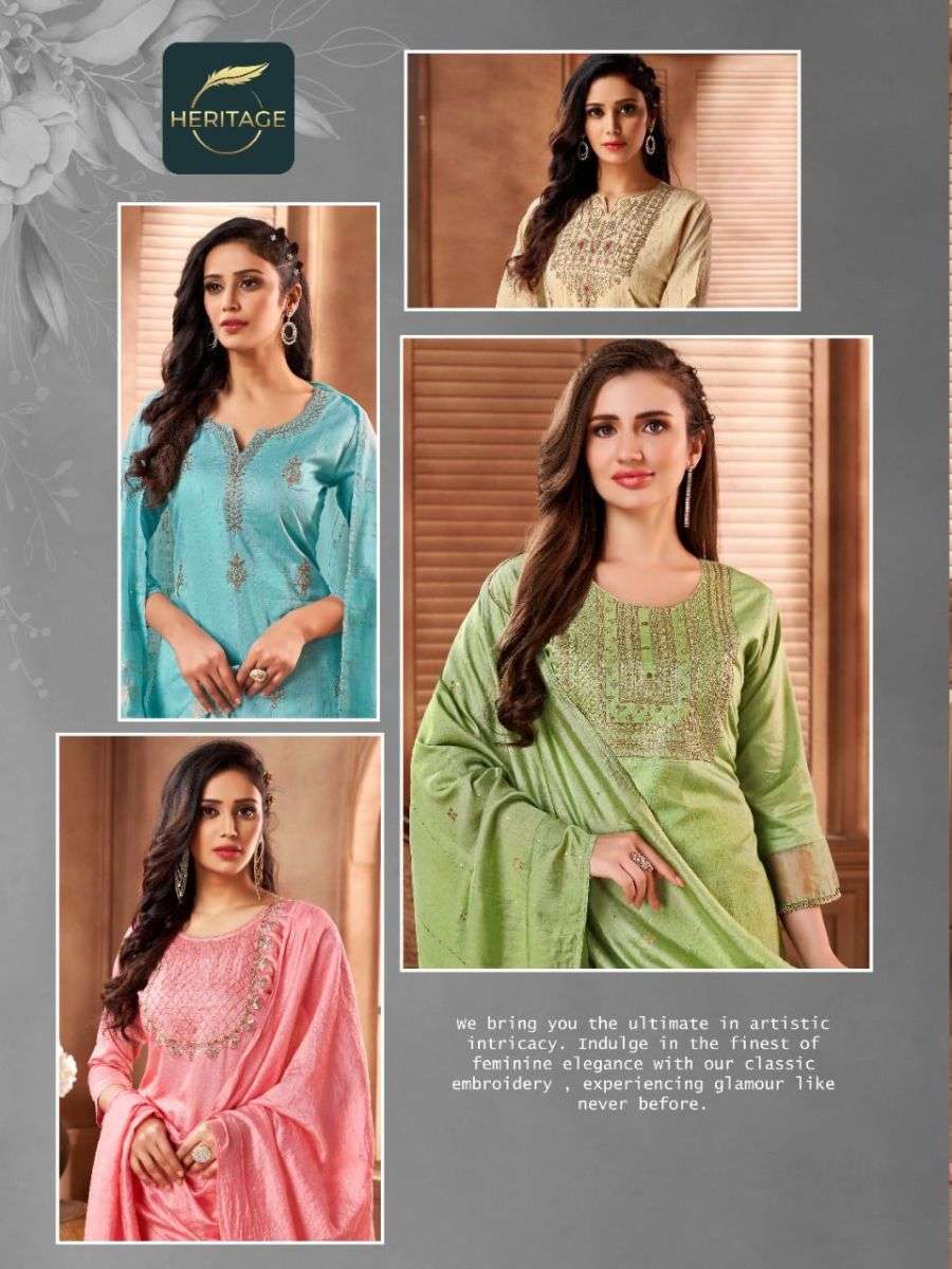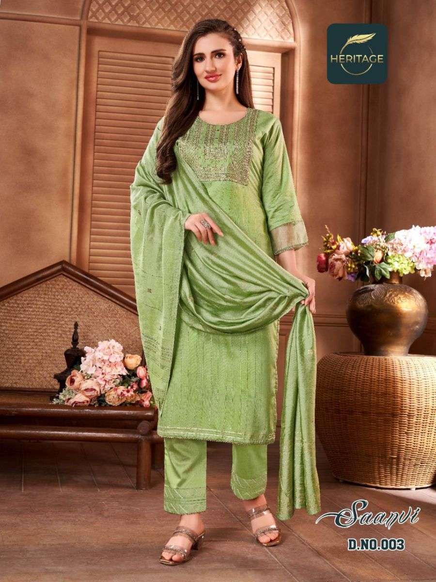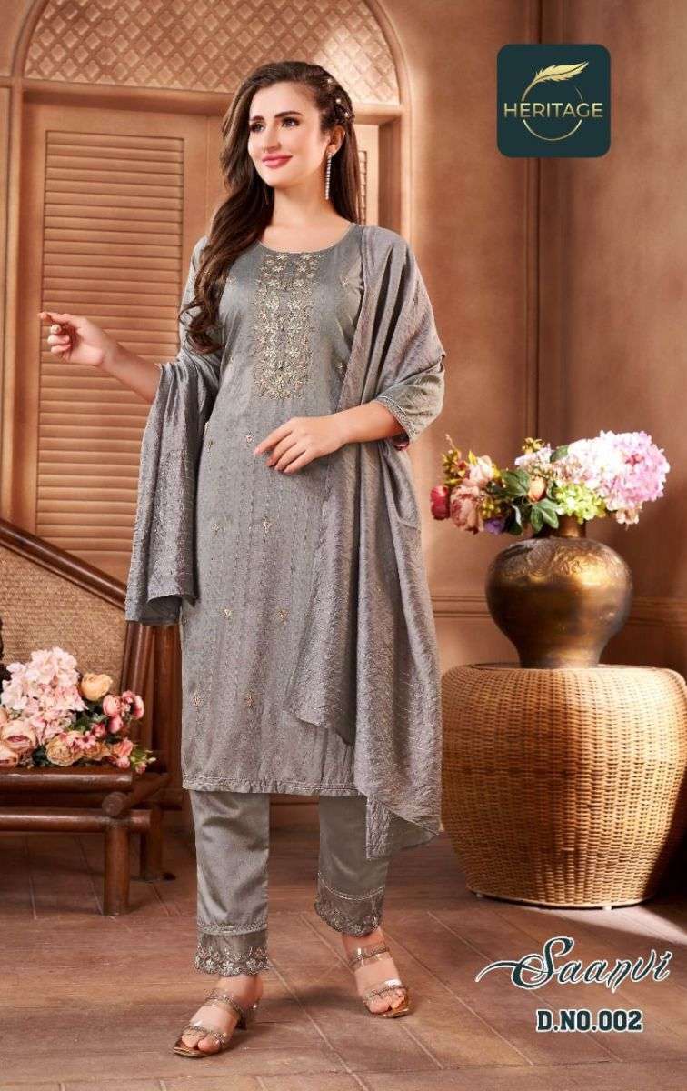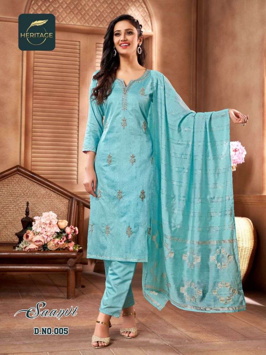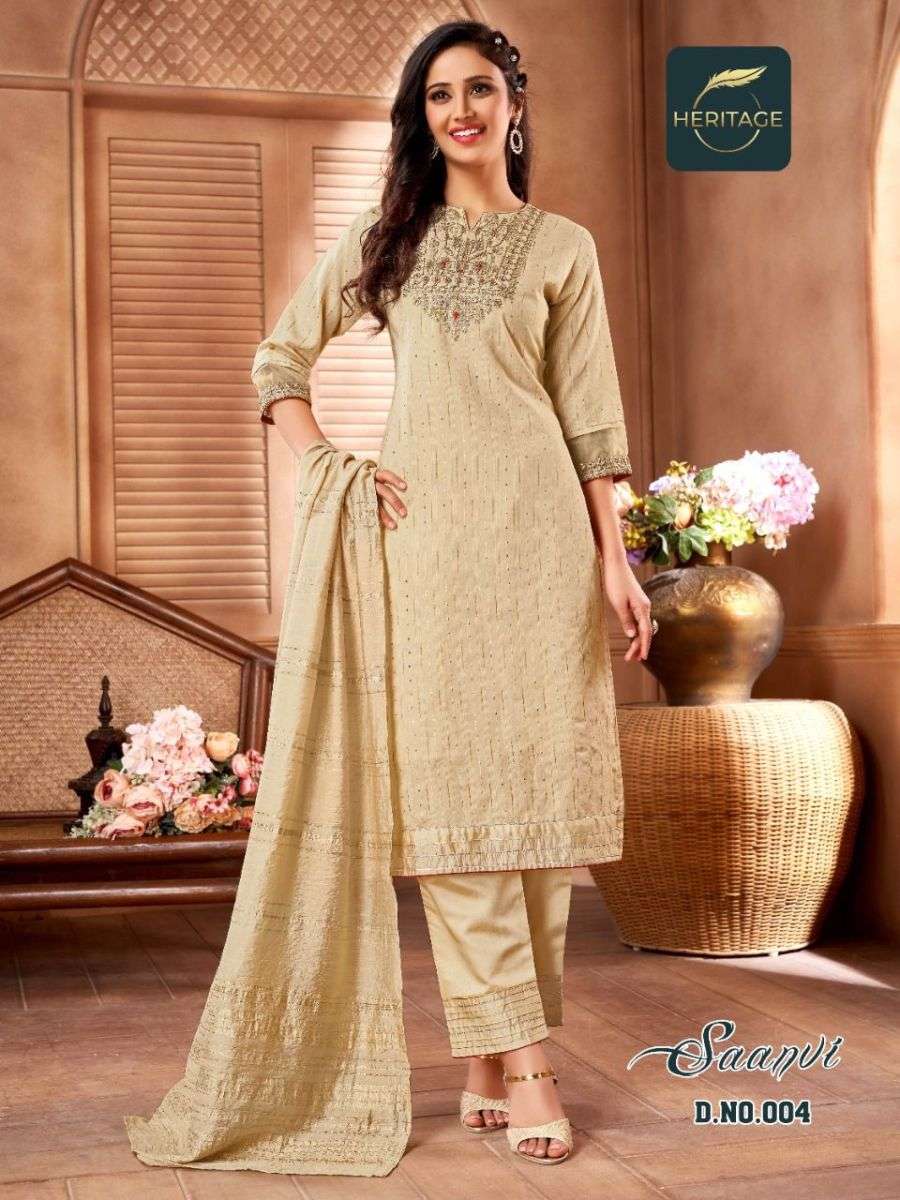 SAANVI BY HERITAGE DESIGNER WITH WORK CHANDERI SILK READYMADE SUITS ARE AVAILABLE AT WHOLESALE PRICE
