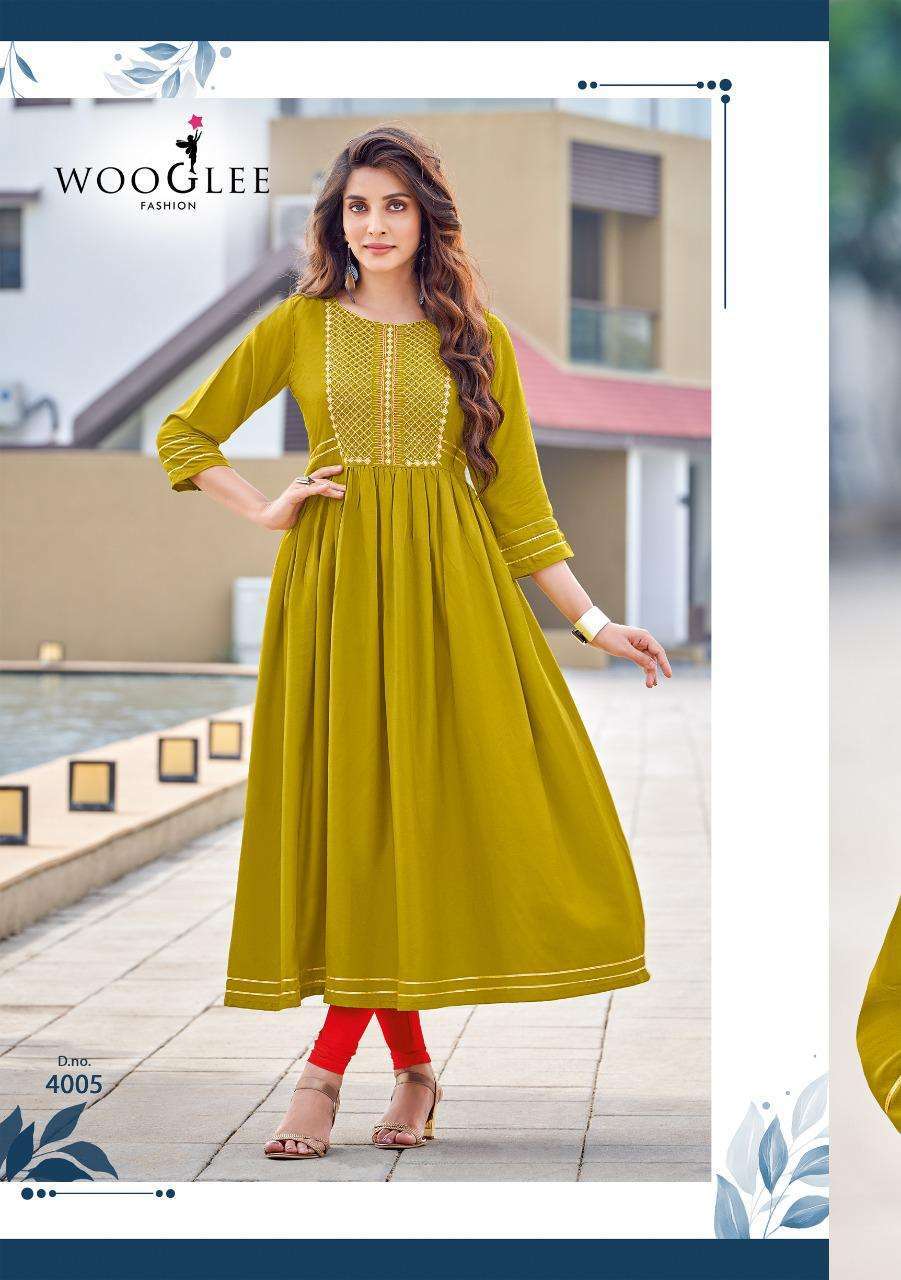 | Name: | wooglee-SAANVI SERIES 4001 TO 4006 KURTI BY WOOGLE |