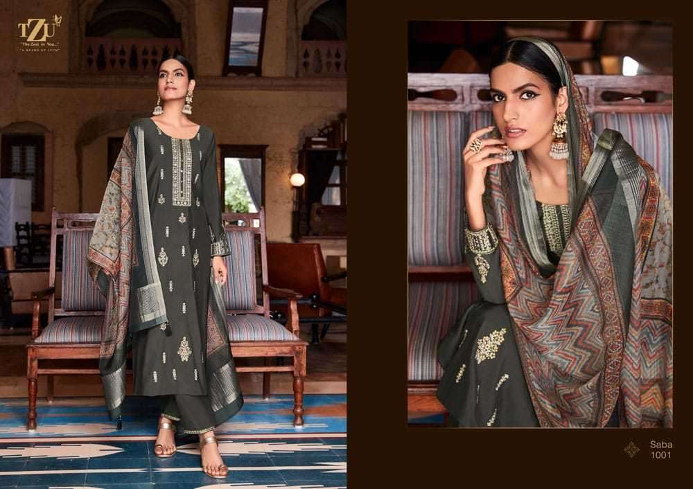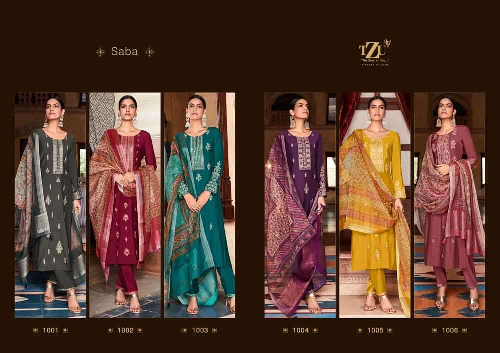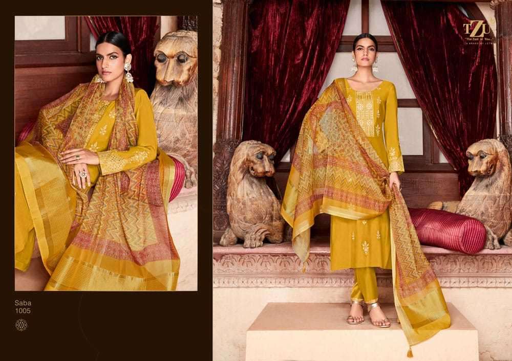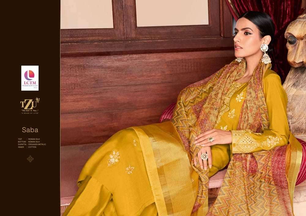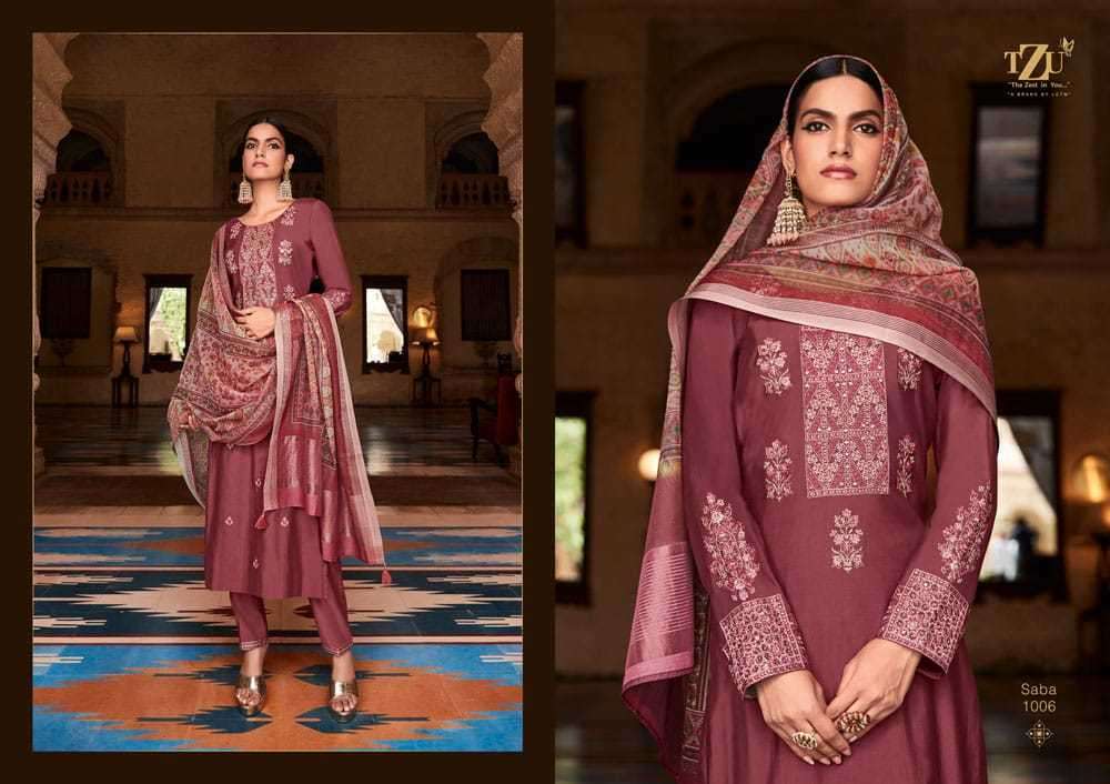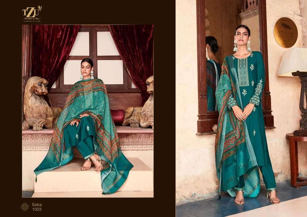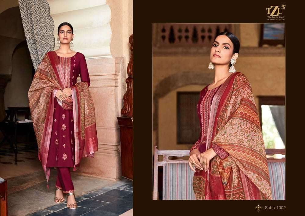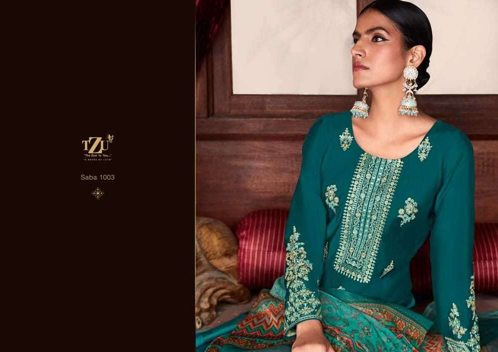 SABA BY TZU DESIGNER WITH WORK ROMAN SILK TOP WITH BOTTOM AND DUPATTA ARE AVAILABLE AT WHOLESALE PRICE