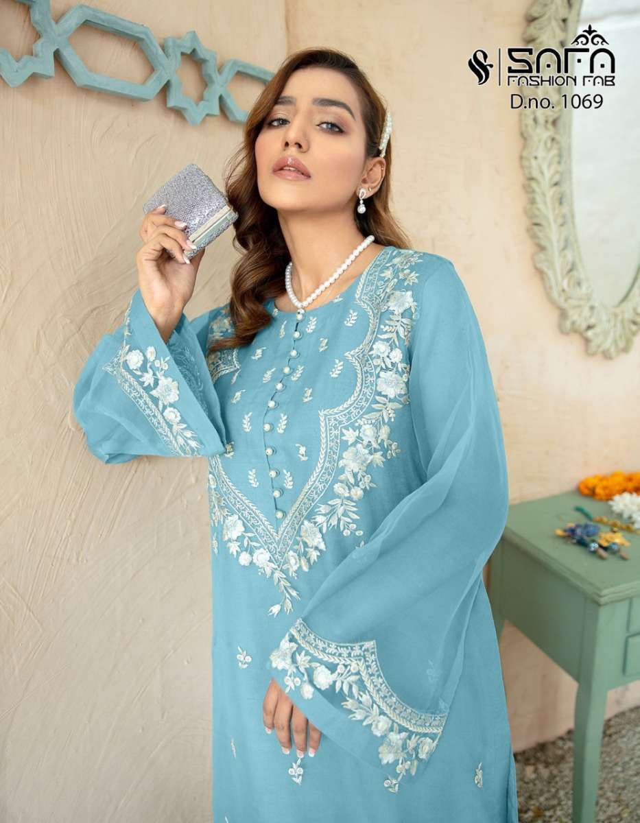SAFA FASHION 1609 DESIGNER WITH WORK GEORGETTE KURTI WITH PANT AND DUPATTA ARE AVAILABLE AT WHOLESALE PRICE