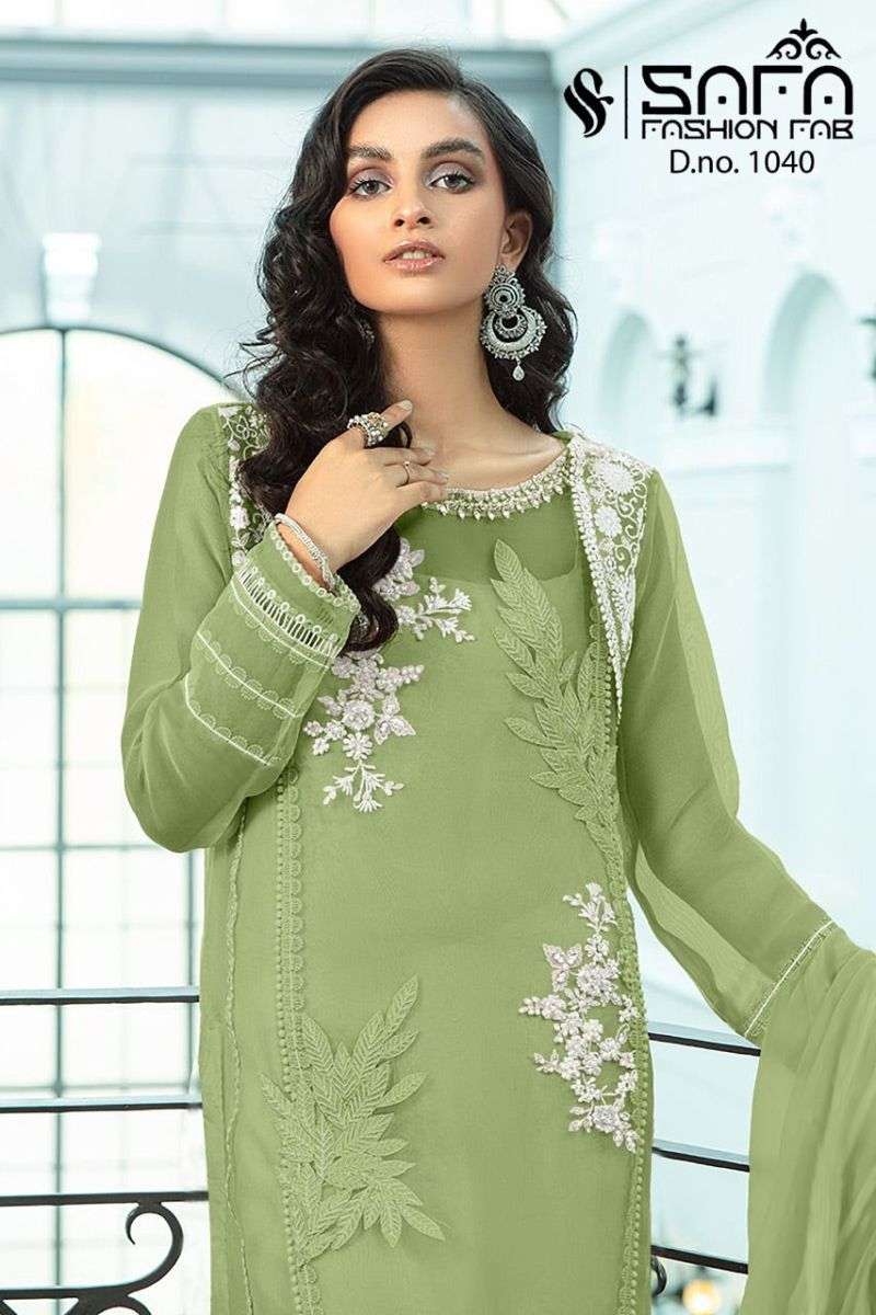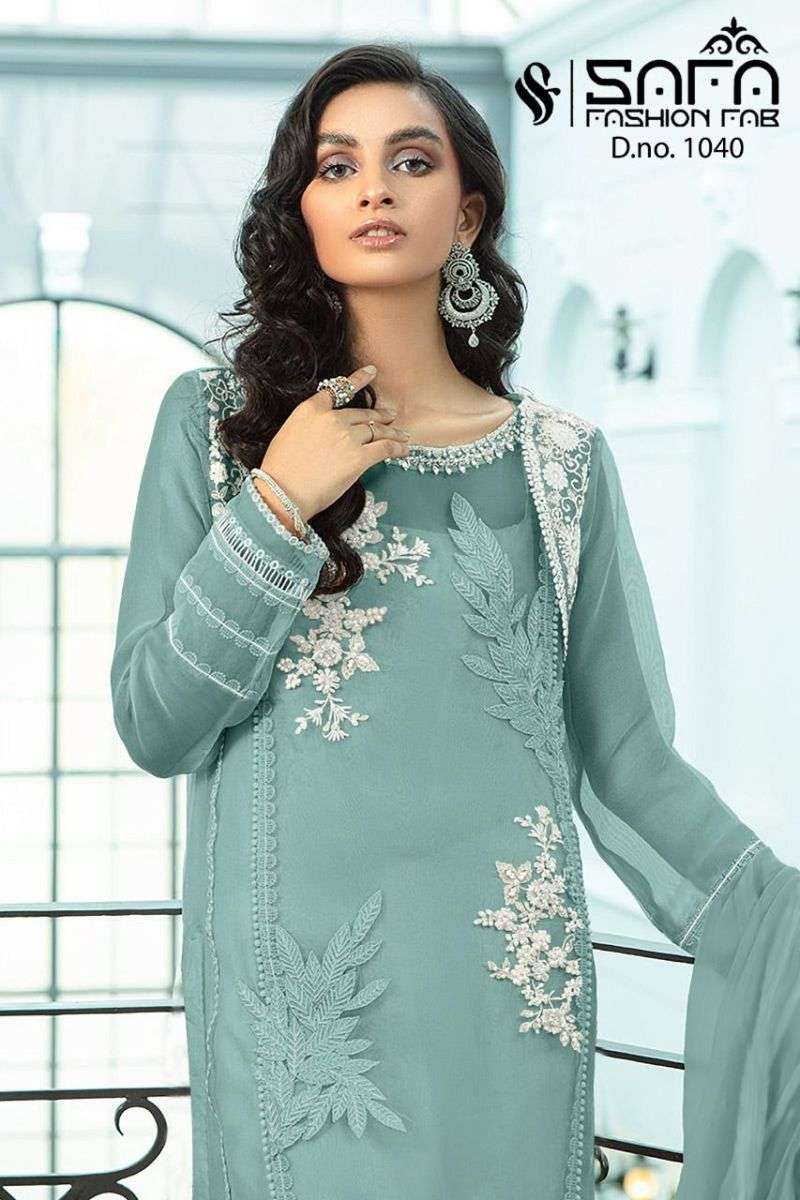 SAFA FASHION FAB 1040 SERIES DESIGNER WITH WORK GEORGETTE PAKISTANI STYLE KURTI WITH BOTTOM AND DUPATTA ARE AVAILABLE AT WHOLESALE PRICE