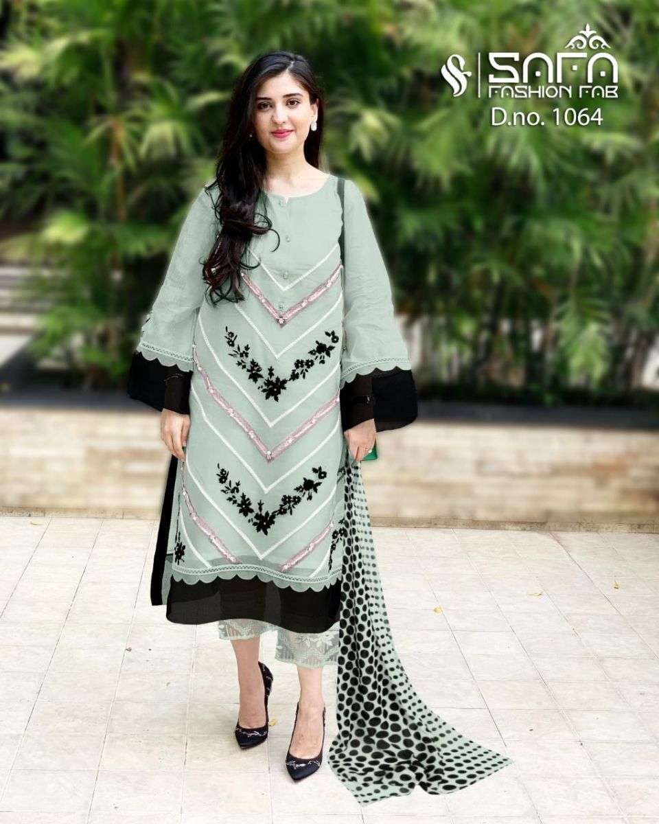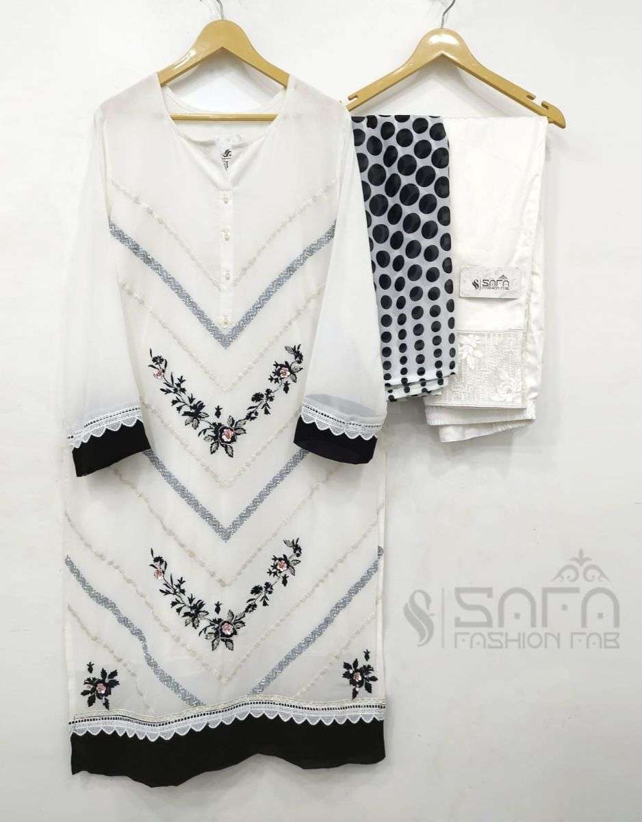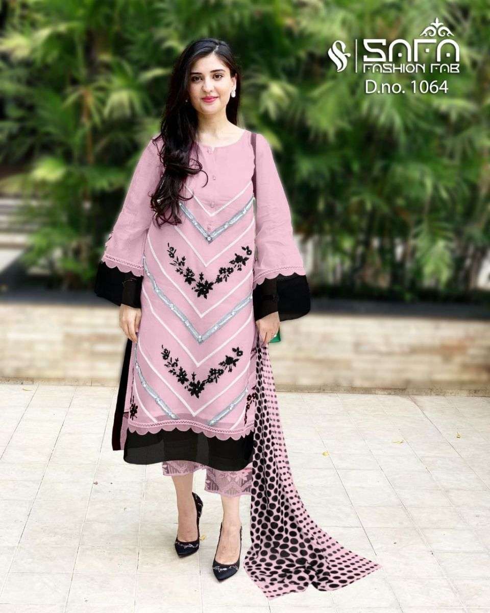 SAFA FASHION FAB 1064 SERIES DESIGNER WITH WORK GEORGETTE PAKISTANI STYLE KURTI WITH BOTTOM AND DUPATTA ARE AVAILABLE AT WHOLESALE PRICE