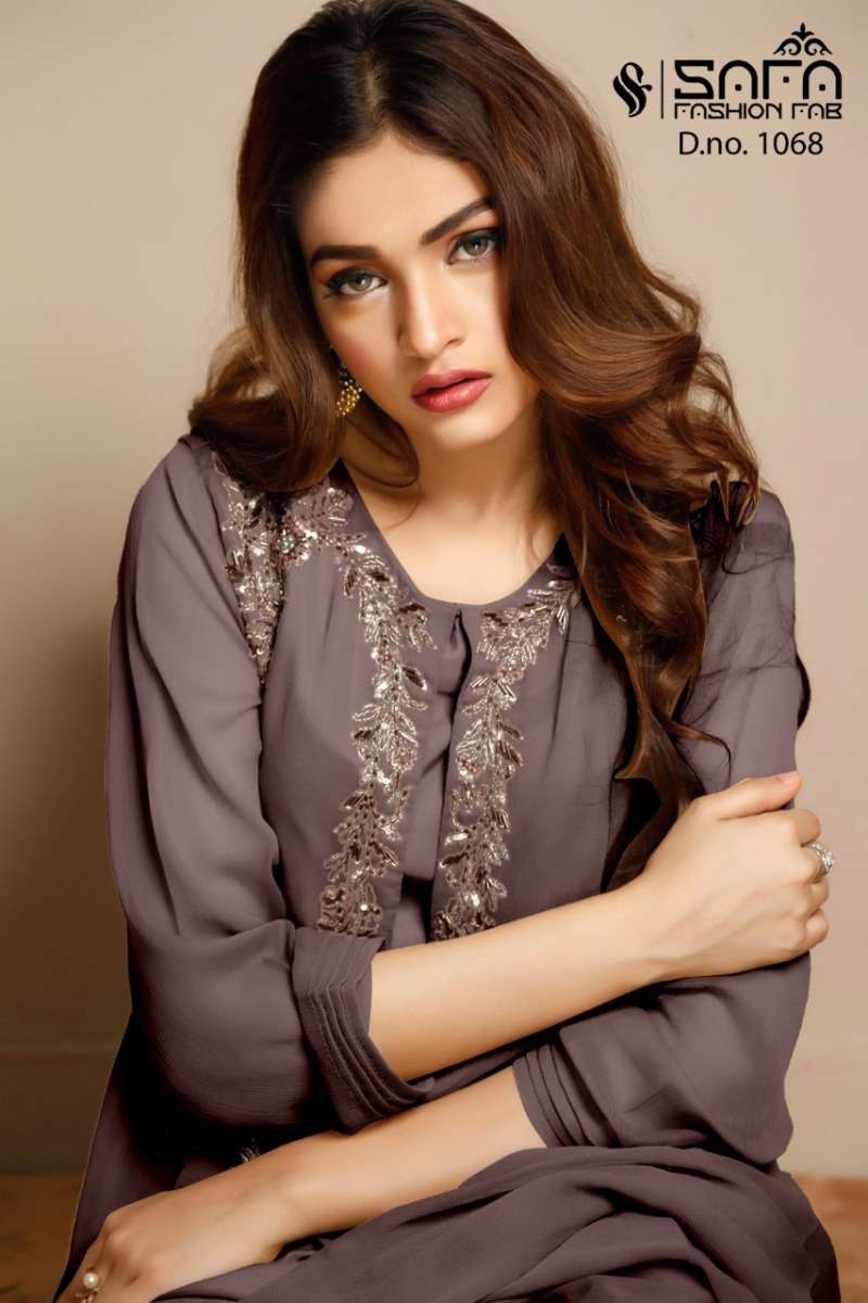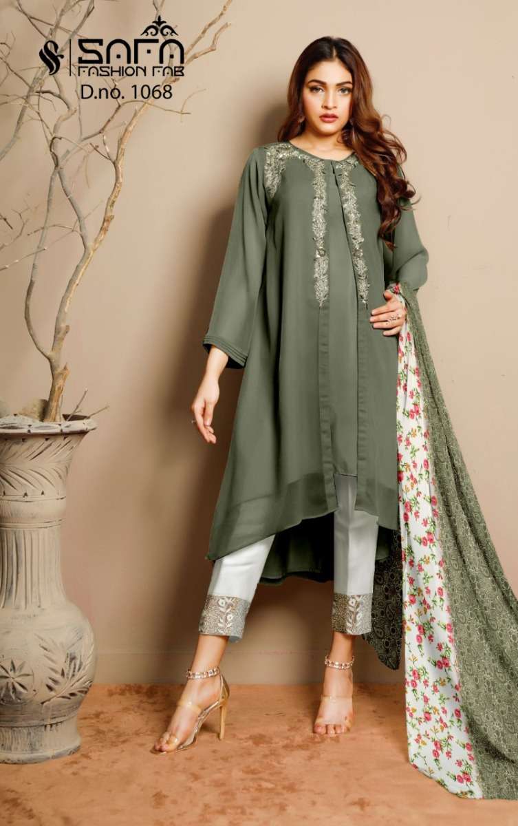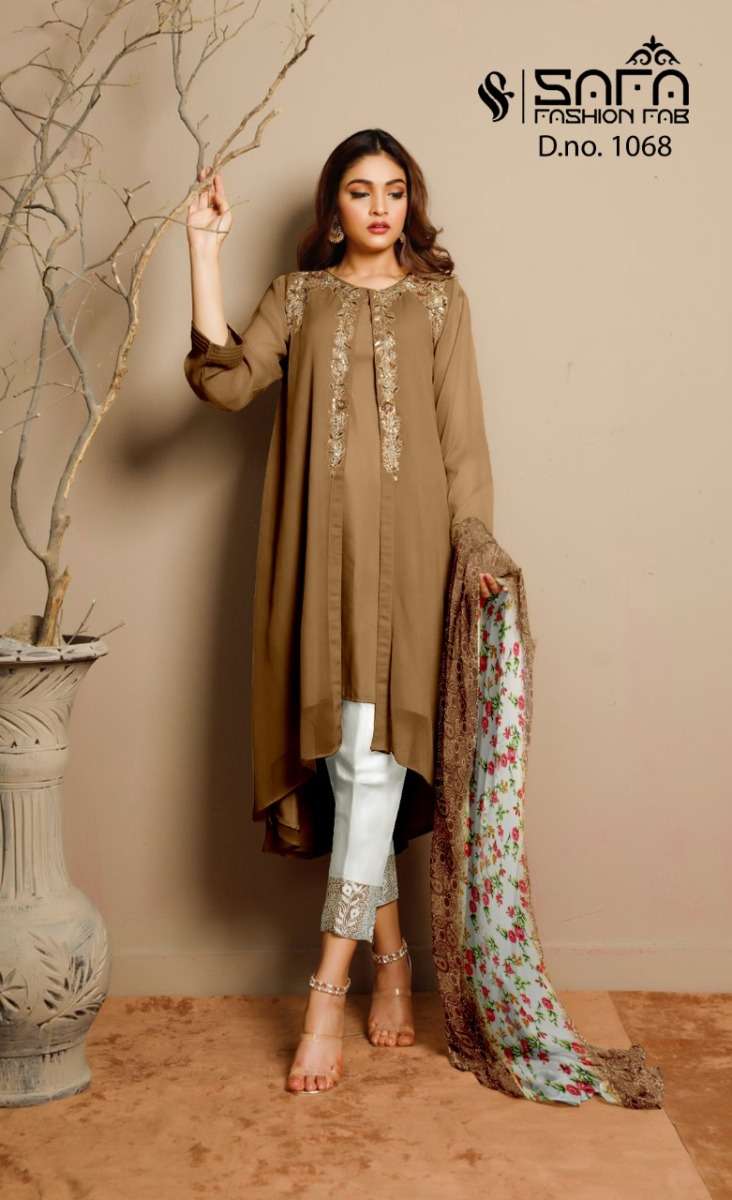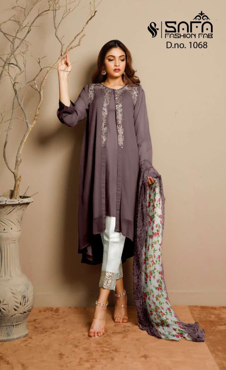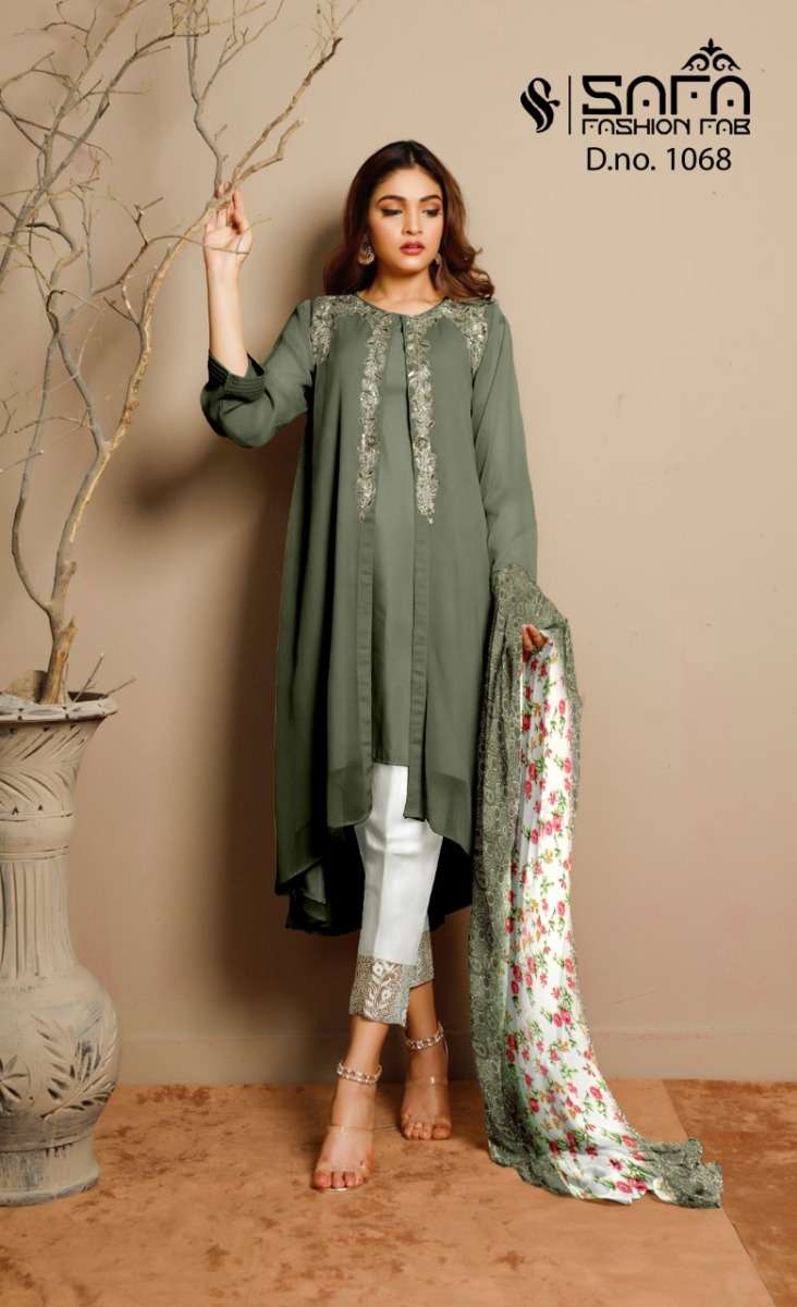 SAFA FASHION FAB 1068 SERIES DESIGNER WITH WORK GEORGETTE PAKISTANI STYLE KURTI WITH BOTTOM AND DUPATTA ARE AVAILABLE AT WHOLESALE PRICE