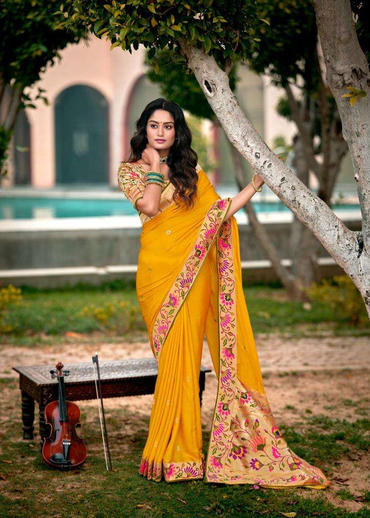 SAFFRON SAREE BY KASHVI LT DESIGNER PARTY WEAR SILK SAREES ARE AVAILABLE AT WHOLESALE PRICE