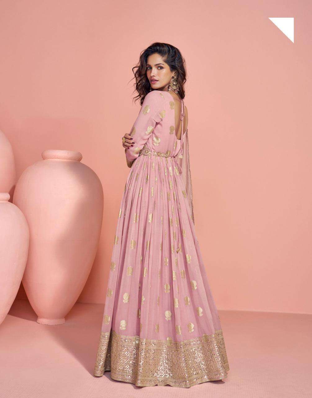 FABRIC - VISCOSE JACQUARD SILK ( HEAVY FESTIVE LOOK FRONT AND BACK EMBROIDERED VISCOSE JACQUARD SILK GOWN WITH EMBROIDERED DUPATTA )