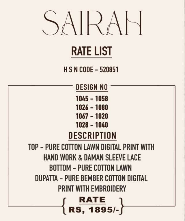| Name: | sahiba-SAIRAH SERIES 1020/26/28/40/45/58/67/80 BY SAHIBA |