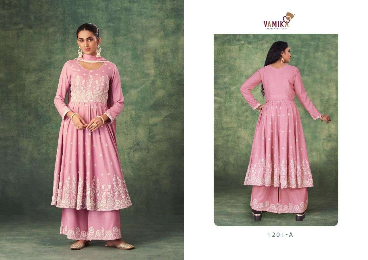 SAKHI BY VAMIKA DESIGNER WITH WORK RAYON TOP WITH PLAZZO AND DUPATTA ARE AVAILABLE AT WHOLESALE PRICE