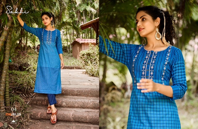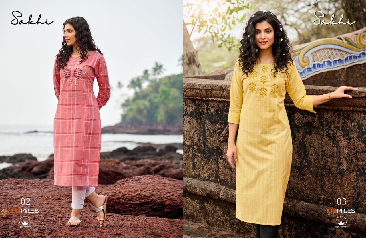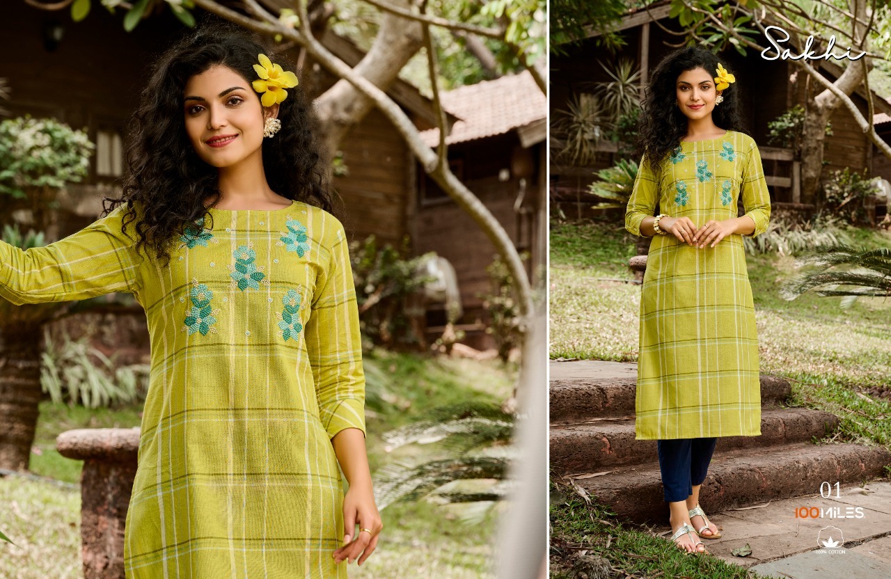 Sakhi Kurti By 100 Miles Designer With Embroidery Work Cotton Kurti With Pant Are Available At Wholesale Price
