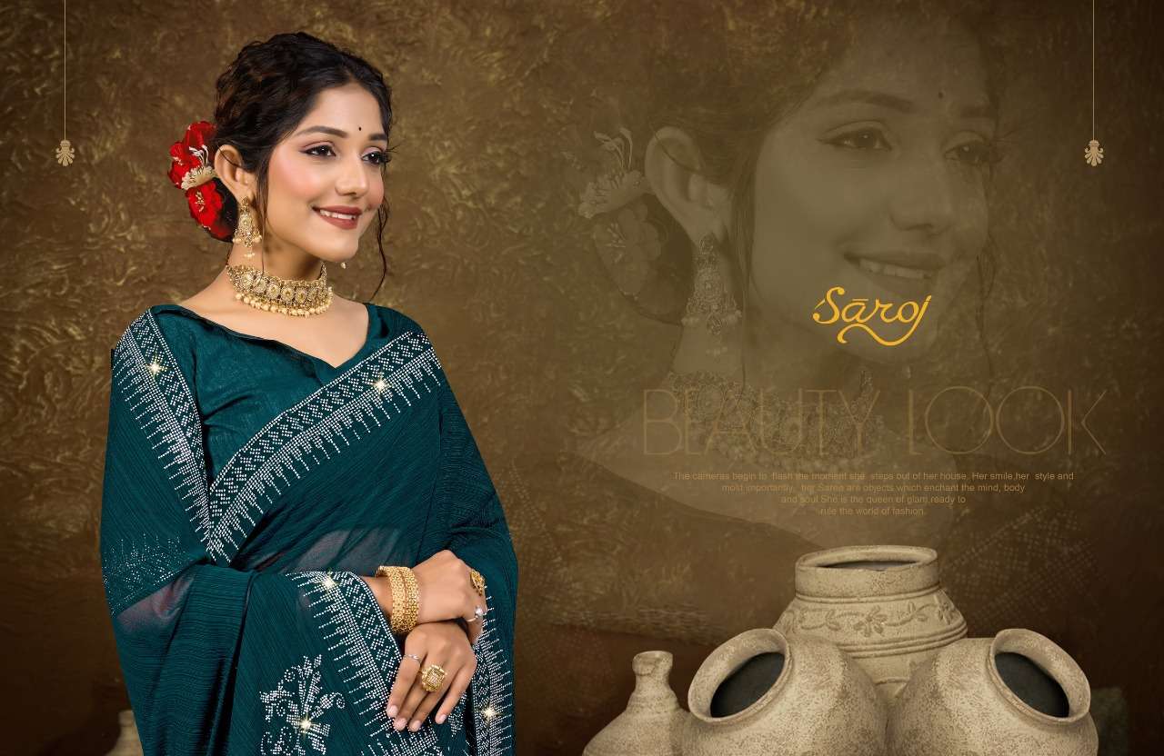 SAKHI SAHELI SAREE BY SAROJ DESIGNER WITH WORK PARTY WEAR FANCY SAREES ARE AVAILABLE AT WHOLESALE PRICE