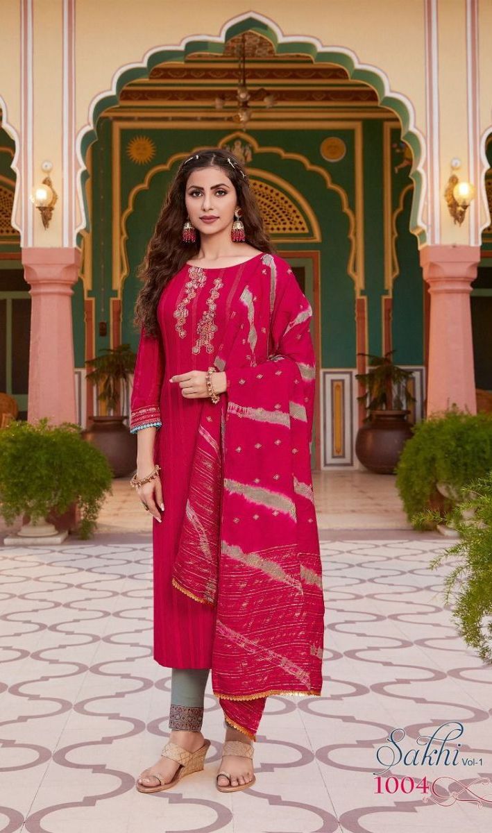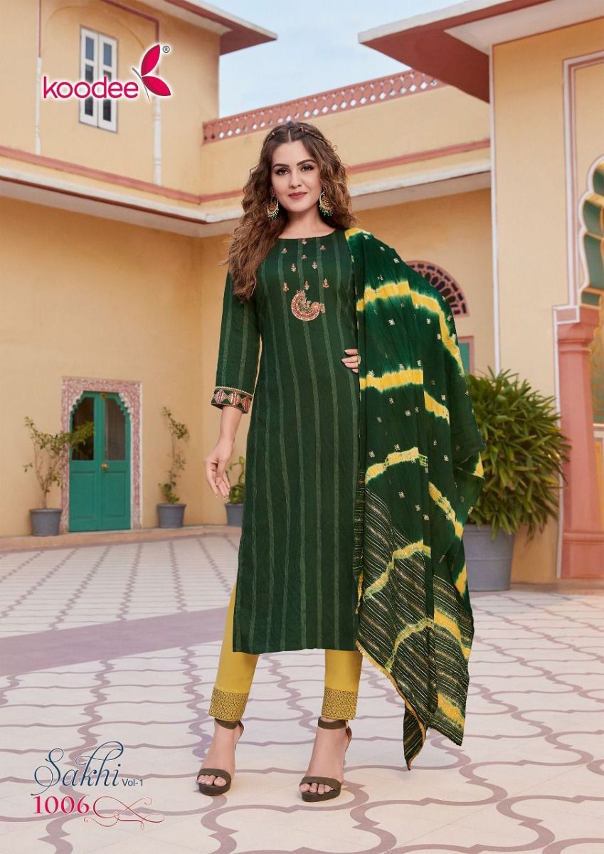 Sakhi Vol-1 Kurti By Koodee Designer With Work Viscose Kurti With Pant And Dupatta Are Available At Wholesale Price