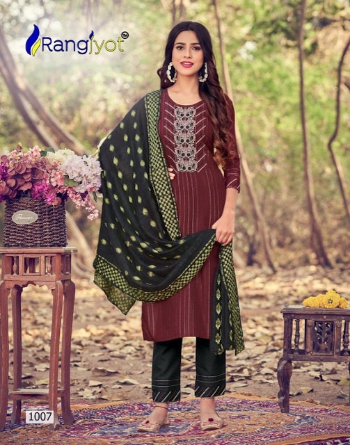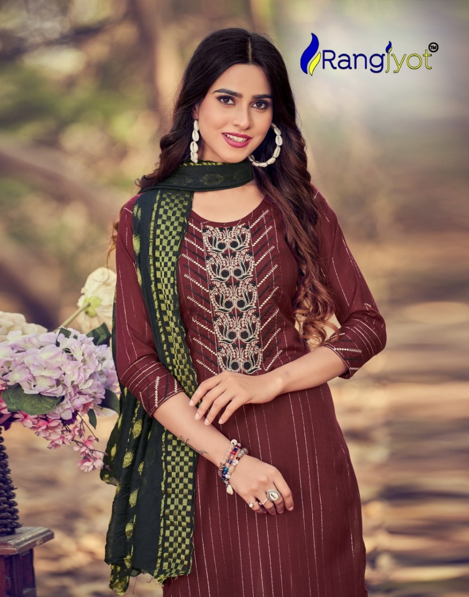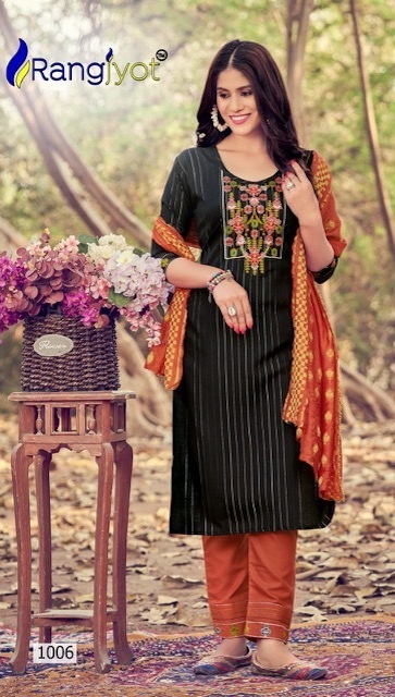 Sakshi Kurti By Rangjyot Designer With Printed Cotton Kurti With Bottom And Dupatta Are Available At Wholesale Price