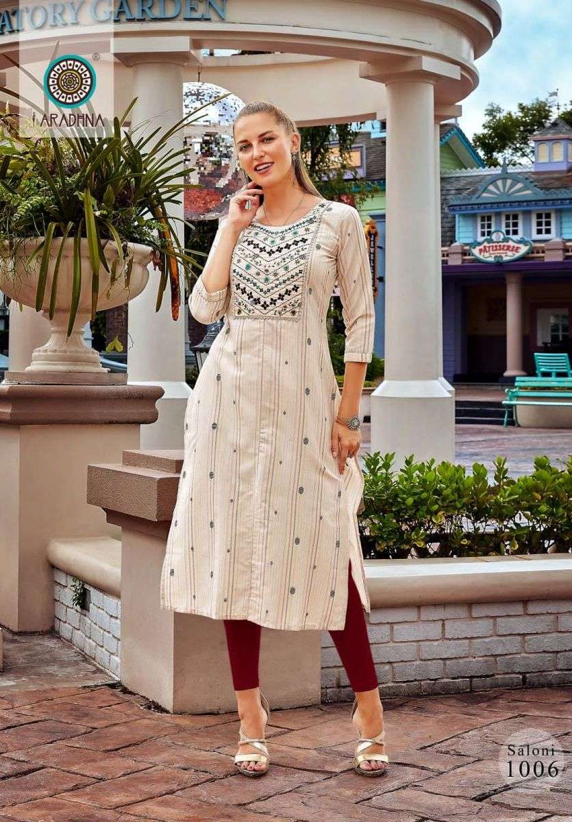 SALONI VOL-1 KURTI BY ARADHANA DESIGNER WITH EMBROIDERY WORK COTTON KURTIS ARE AVAILABLE AT WHOLESALE PRICE