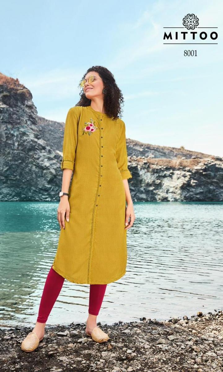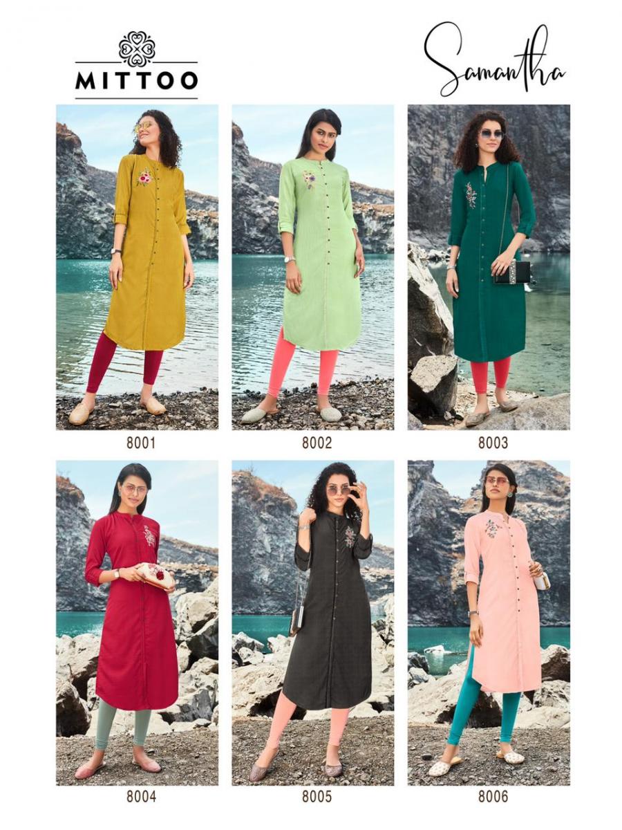 Samantha Kurti By Mitto Designer With Hand Work Viscose Long Kurtis Are Available At Wholesale Price
