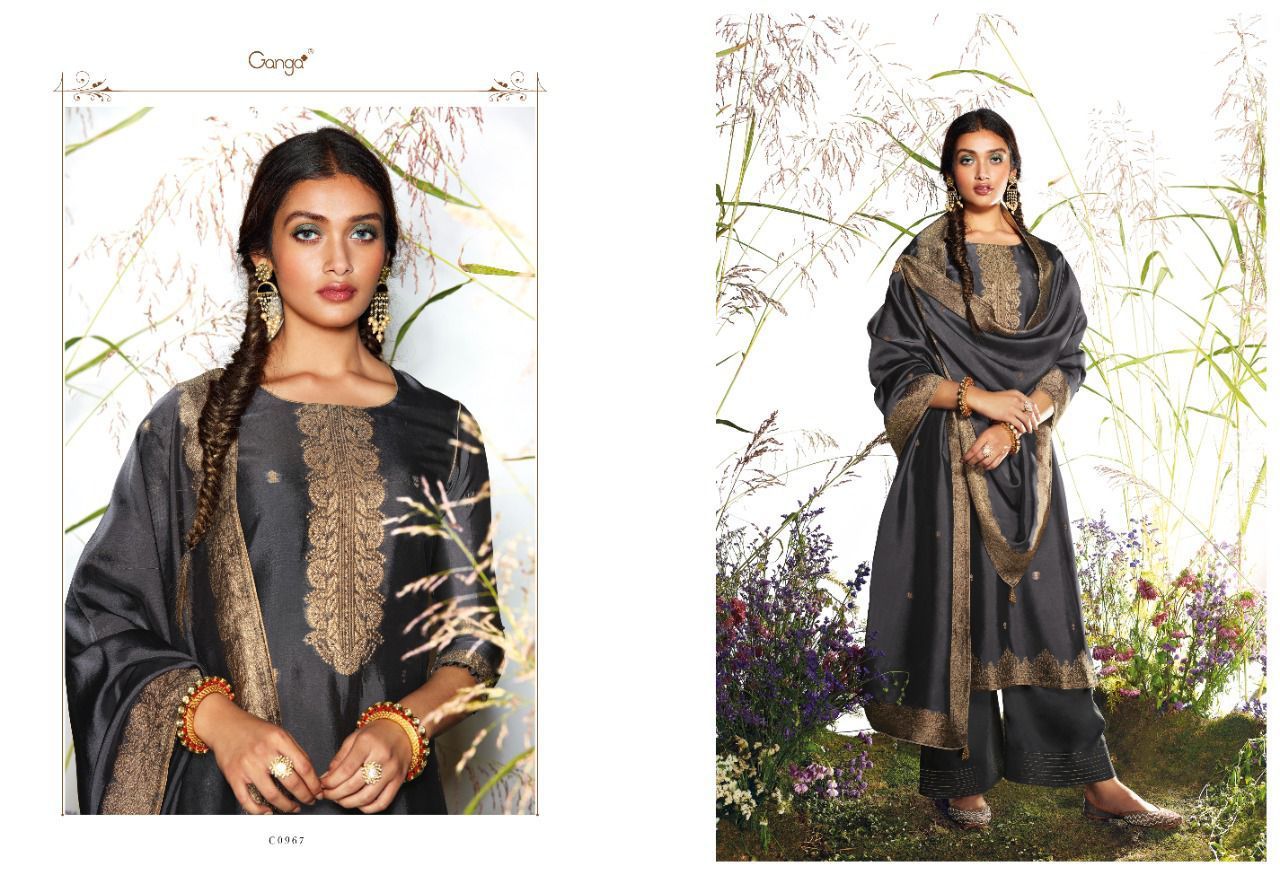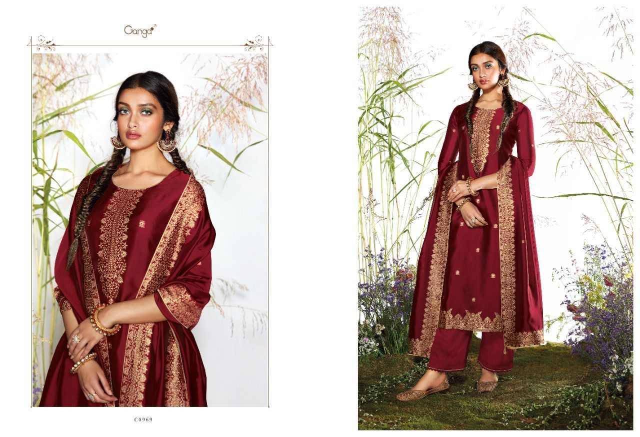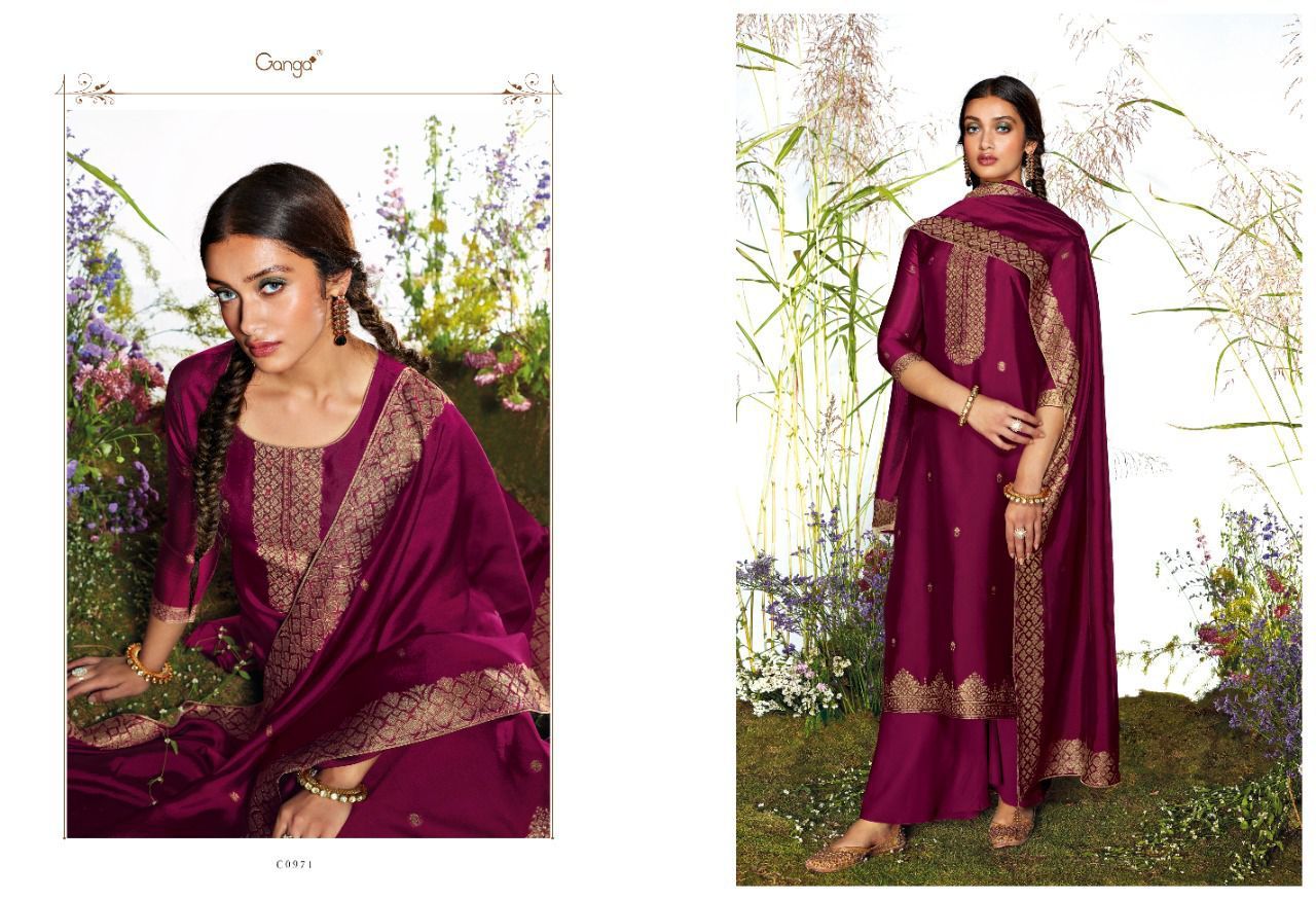 Samyati By Ganga Designer With Hand Work Viscose Woven Jacquard Silk Suits Are Available At Wholesale Price