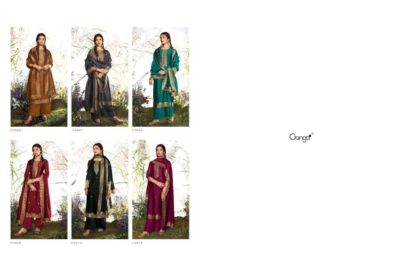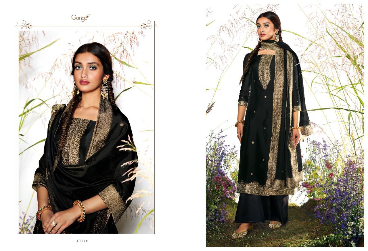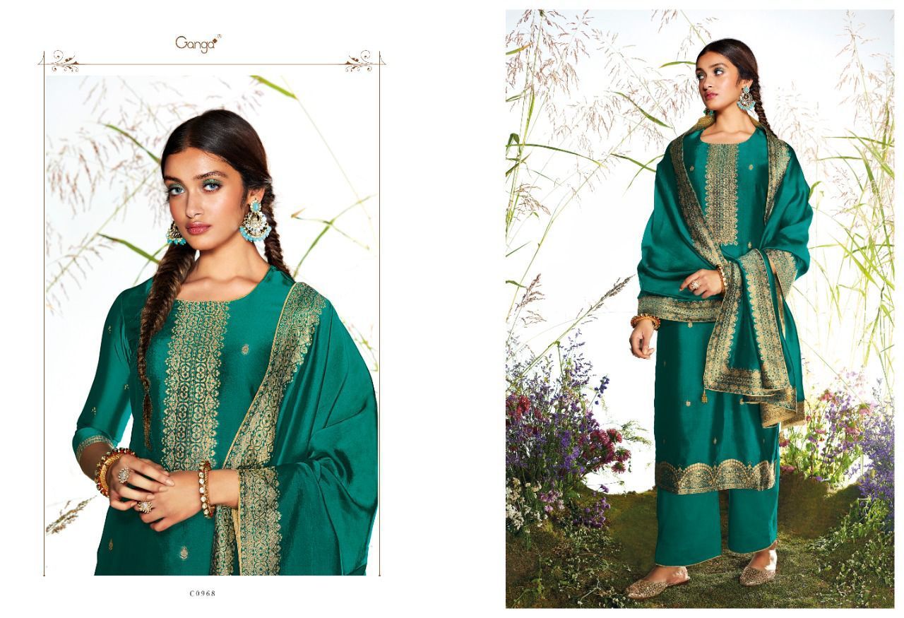 Samyati By Ganga Designer With Hand Work Viscose Woven Jacquard Silk Suits Are Available At Wholesale Price