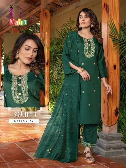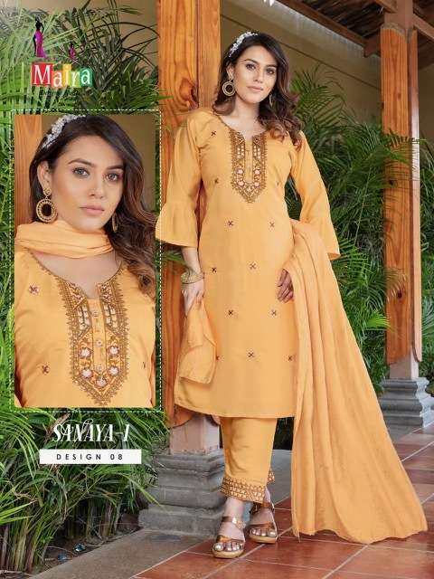 SANAYA VOL-1 KURTI BY MAIRA DESIGNER WITH WORK RAYON VISCOSE SILK KURTI WITH PANT AND DUPATTA ARE AVAILABLE AT WHOLESALE PRICE