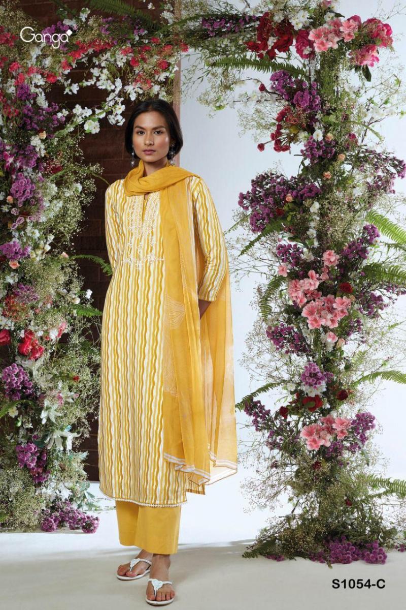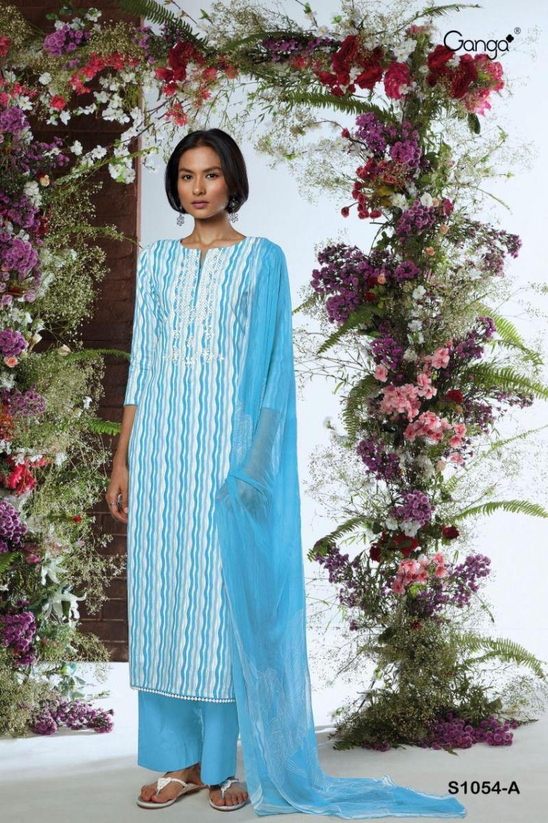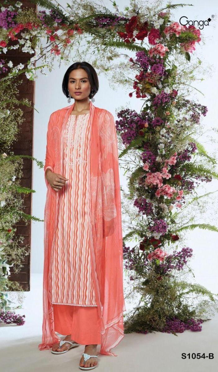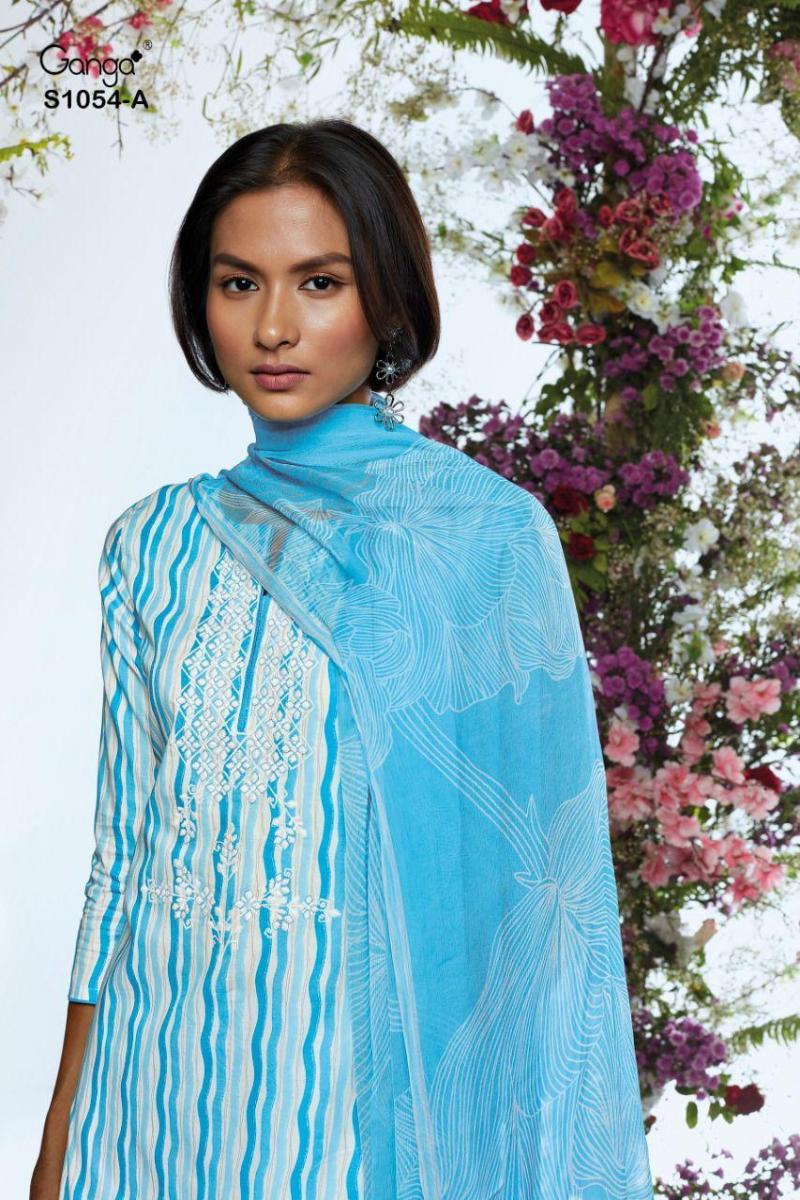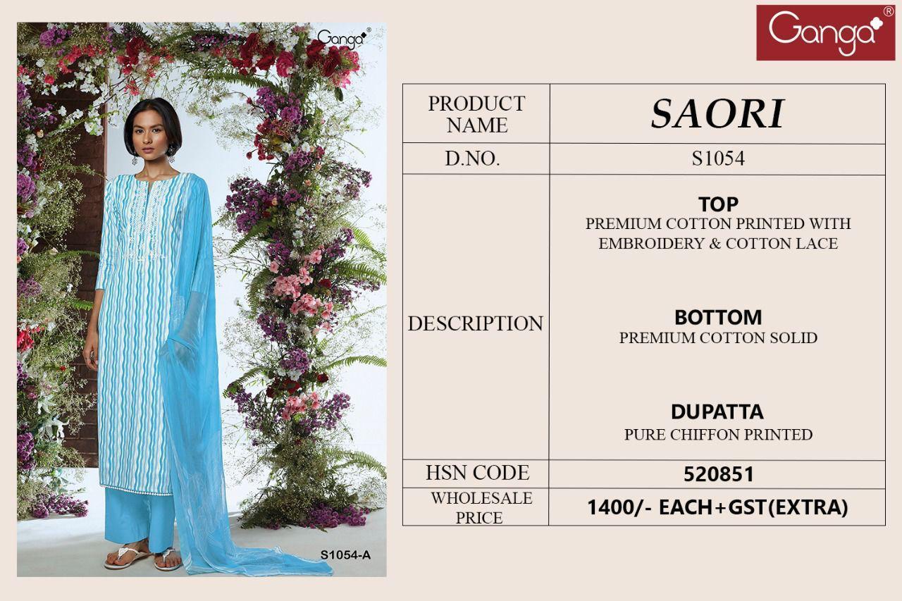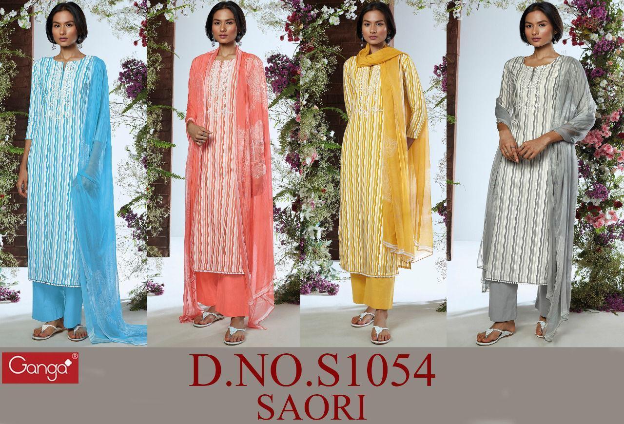 Saori S1054 By Ganga Designer With Printed And Embroidery Work Cotton Suits Are Available At Wholesale Price
