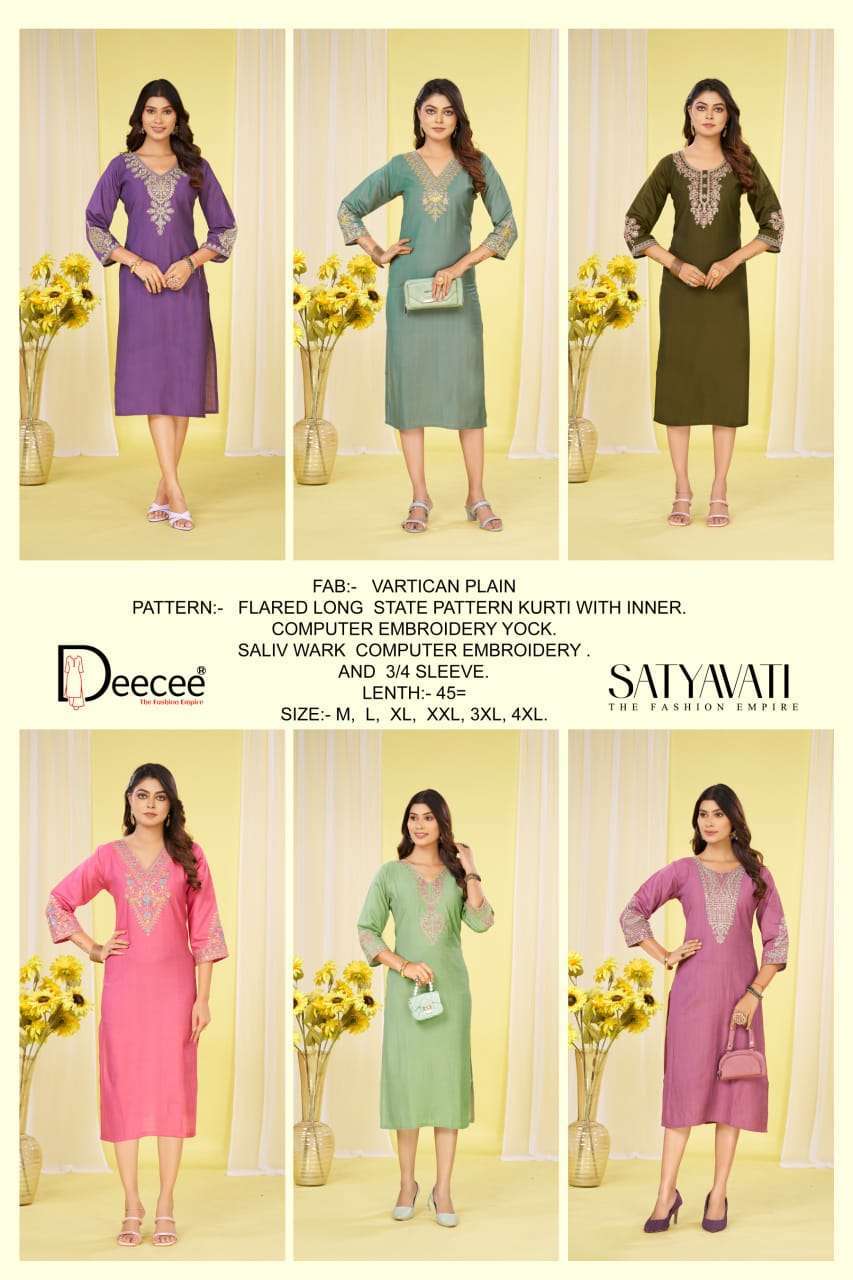 | Name: | dee cee-SATYAVATI SERIES 01 TO 06 KURTI BY DEE CEE |
