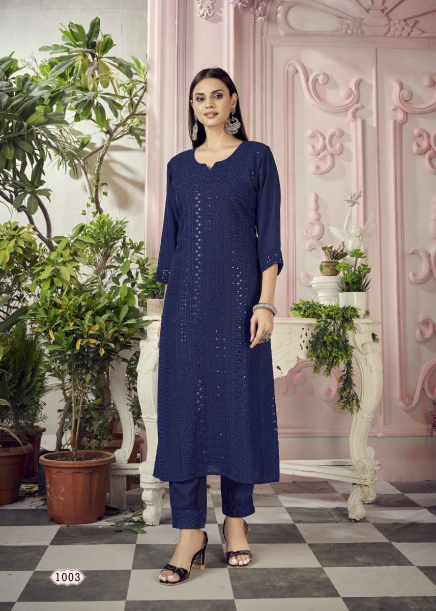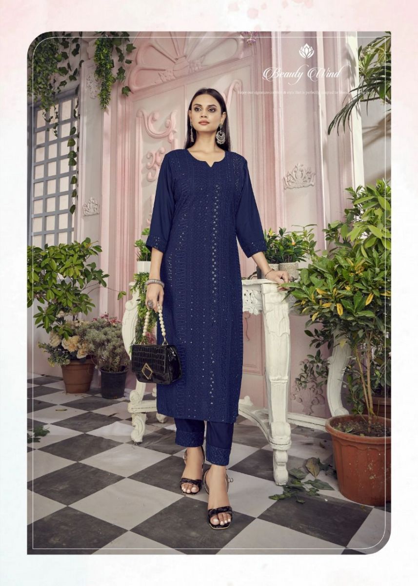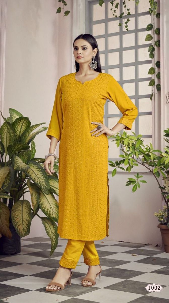 Schiffli Kurti By Banwery Designer With Work Rayon Kurti With Pant Are Available At Wholesale Price