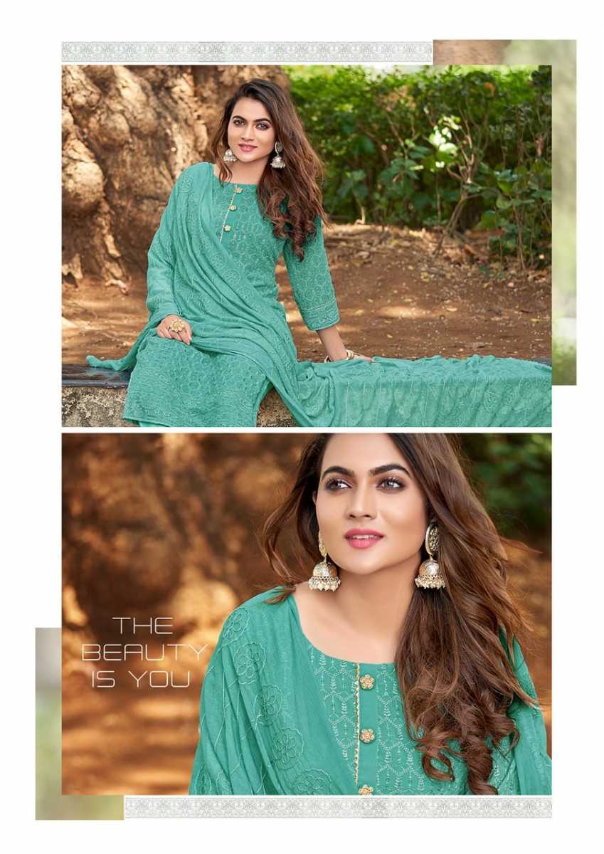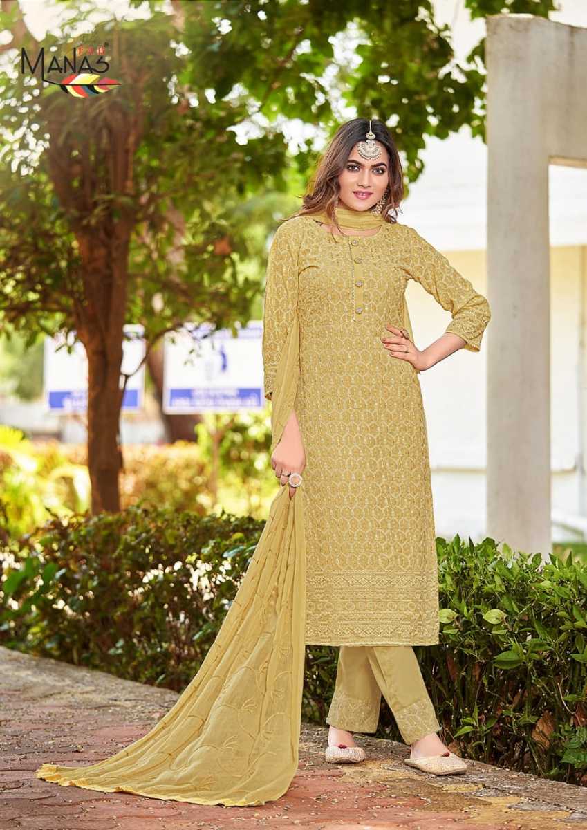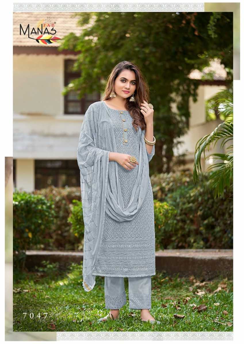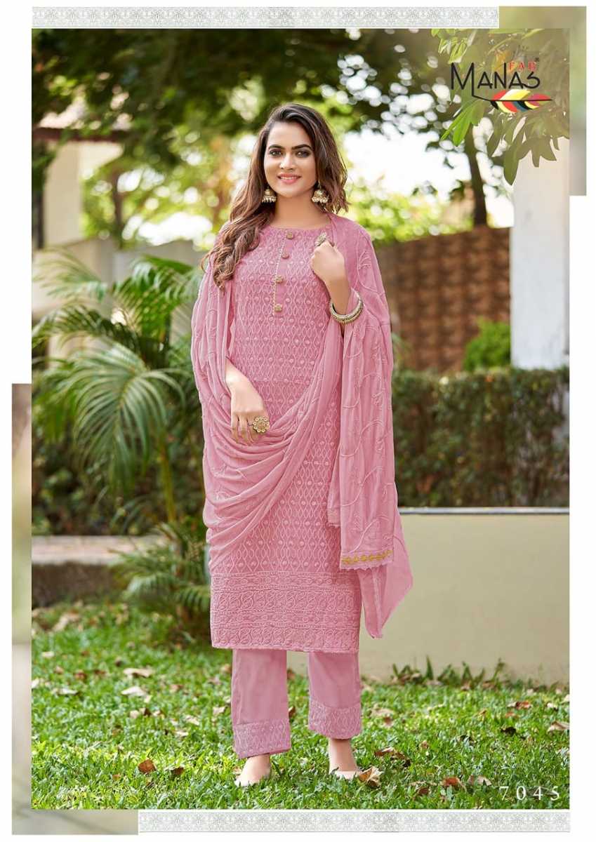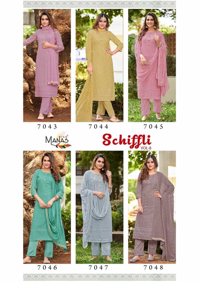 Schiffli Vol-8 Kurti By Manas Fab Designer With Schiffli Work Georgette Kurti With Bottom And Dupatta Are Available At Wholesale Price