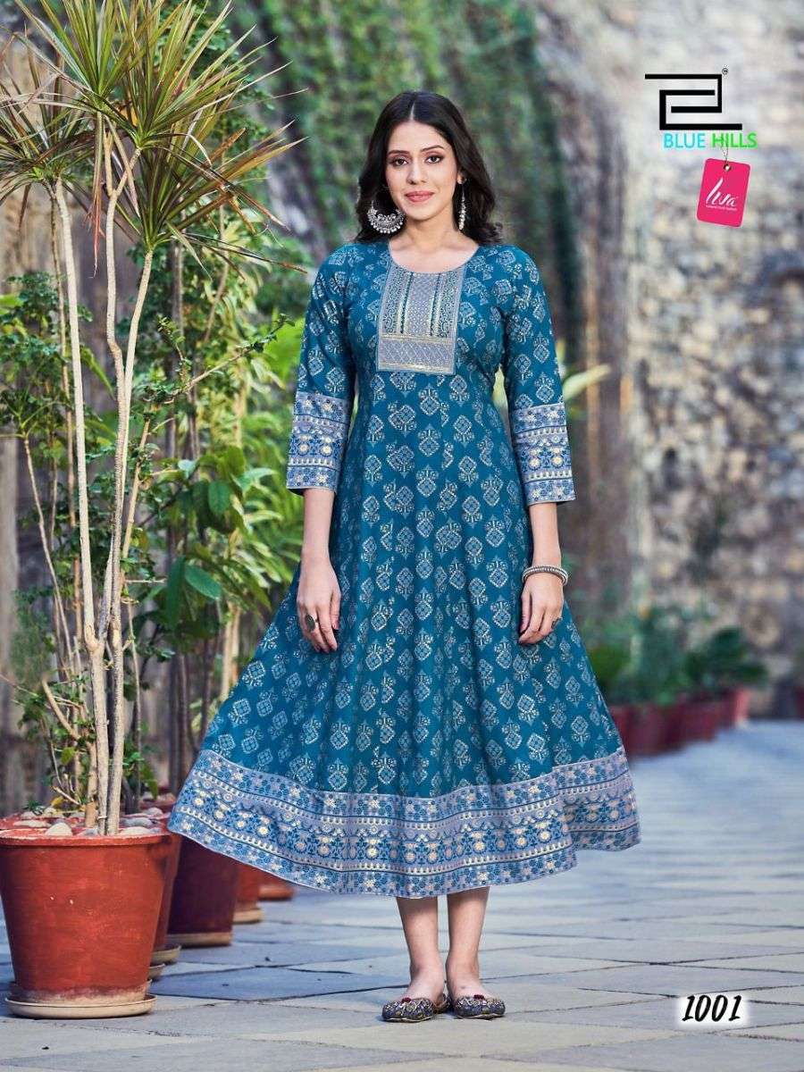 SENSATIONAL GOWN BY BLUE HILLS DESIGNER WITH FOIL PRINTED RAYON GOWNS ARE AVAILABLE AT WHOLESALE PRICE