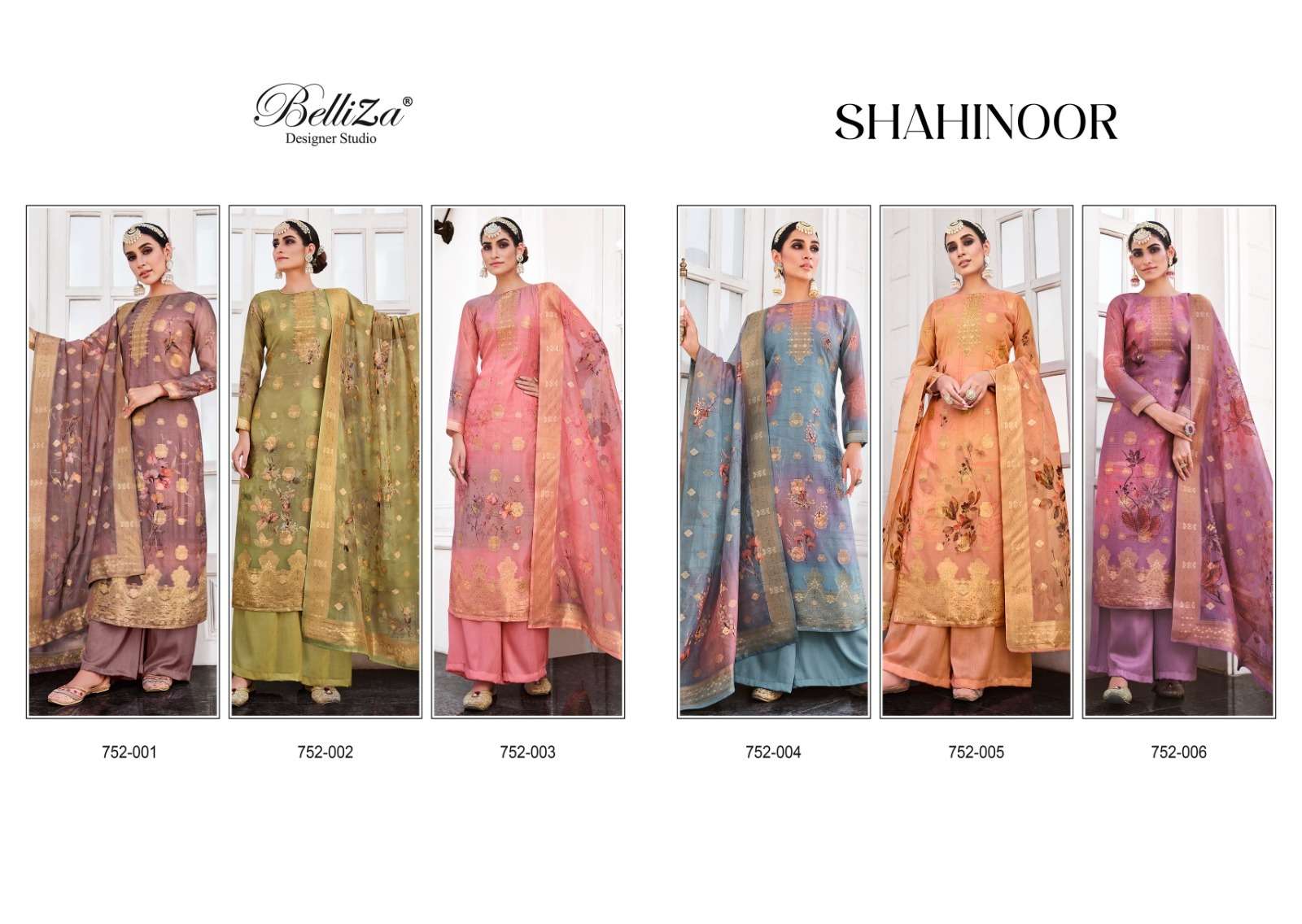 SHAHINOOR BY BELLIZA DESIGNER WITH WORK ORGANZA JACQUARD SUITS ARE AVAILABLE AT WHOLESALE PRICE